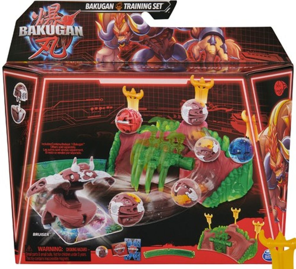 Přizpůsobte si a vylepšete každou bitvu Bakuganů pomocí Bakugan tréninková sada. Každá hrací sada a Bakugan jsou tematicky zaměřené na různé klany ze seriálu. Přehrávejte si vlastní zápasy a překážky pomocí pružinového systému, 3 totemů a kousku stěny a pokaždé si zahrajte jedinečnou hru. Pusťte, převalte a udržte Bakugana na této hrací soupravě a zachyťte akci pomocí kousku stěny. Převalte svého Bakugana na kartu brány a sledujte jeho proměnu pomocí ikonických otevíracích transformací. Vstupte do bitvy s přiloženými klanovými vlajkami, které představují vašeho Bakugana. Použijte kartu postavy pro získání nových statistik a zvyšte si tak úroveň hry. Každá akční figurka Bakugan obsahuje speciální kód pro použití v online hře Roblox pro nové možnosti hraní a interakce. Zkombinujte více tréninkových sad nebo bitevní arénu a vytvářejte větší bitvy pro více akce. Zařaďte všechny nové populární hračky Bakugan mezi své oblíbené sběratelské předměty, včetně Bakugan Speciální útok a Bakugan balení Speciální útok (každý prodáván zvlášť). Použijte plechový box Baku-Tin (prodává se samostatně) nebo bakuganský kufřík ideální pro uložení všech bojových postav a karet při další bitvě Bakugan. Trénujte a staňte se vítězem s Bakugan tréninkovými sadami.