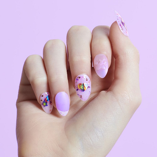 Exkluzivní dvojbalení nápaditě balené sady Manikůry s jedinečnými styly jako nehty svítcí ve tmě, voňavé nehty či nehty které mění barvu a další. Obsah balení: 80 nalepovacích nehtů (2 speciální efekty), 4 3D nehty (2 speciální efekty), 10 nalepovacích nehtů (2 speciální překvapení), 2 listy se samolepkami s překvapením + 2 třpytivé fólie, 4 listy s lepidlem na nehty, 2 speciální třpytivé laky, 1 pilník na nehty.