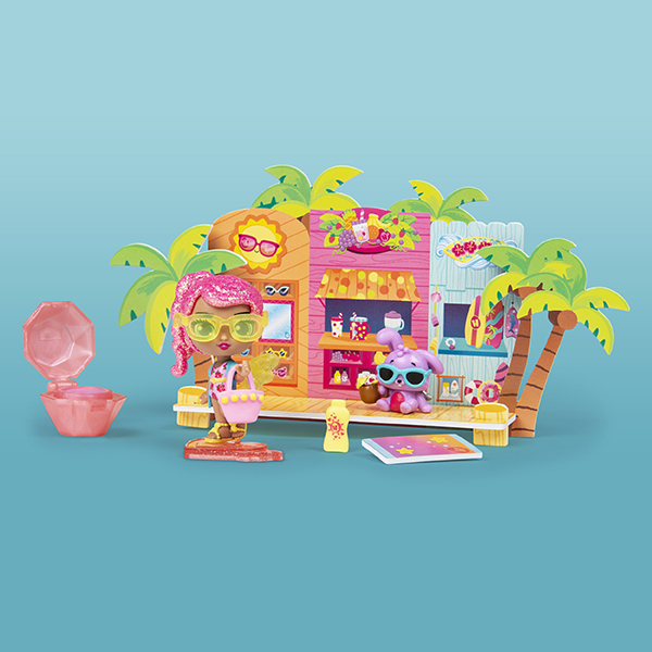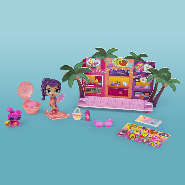 Oslňte pláž vlastním molem s Hatchimals Pixies hrací sadou dovolená. Otevřete opakovaně použitelný kufr a najděte jednu ze dvou možných exkluzivních sběratelských panenek Pixies, oblečených v módních plavkách a s třpytivými vlasy. Najdete Beachy Bria nebo Beachy Brooke? Představujeme více než 15 překvapení pro zábavný den na pláži. Objevte třpytivý lesk na rty, který můžete nosit i vy, opalovací krém, samolepky na ozdobu kufru a kartonové molo. Promáčkněte obě brašny a najděte doplňky jako sluneční brýle, kabelky a exkluzivní Hatchimals CollEGGtible. Sestavte si scénu na promenádě. Obě panenky mají kouzelná třpytivá křidélka, která se opravdu třepotají a otáčecí hlavičky.