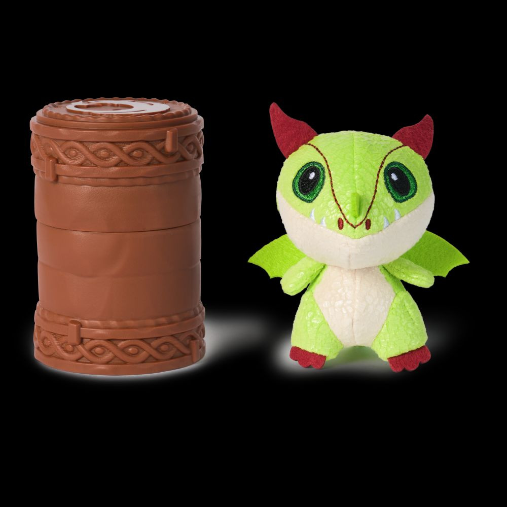 Plyšáci o velikosti 8 cm. Mají krásný vzhled a povrch imitující šupiny. Jsou ukryti v plastovém sudu. Pro kupujícího je pak překvapení, jakého draka v sudu objeví.
