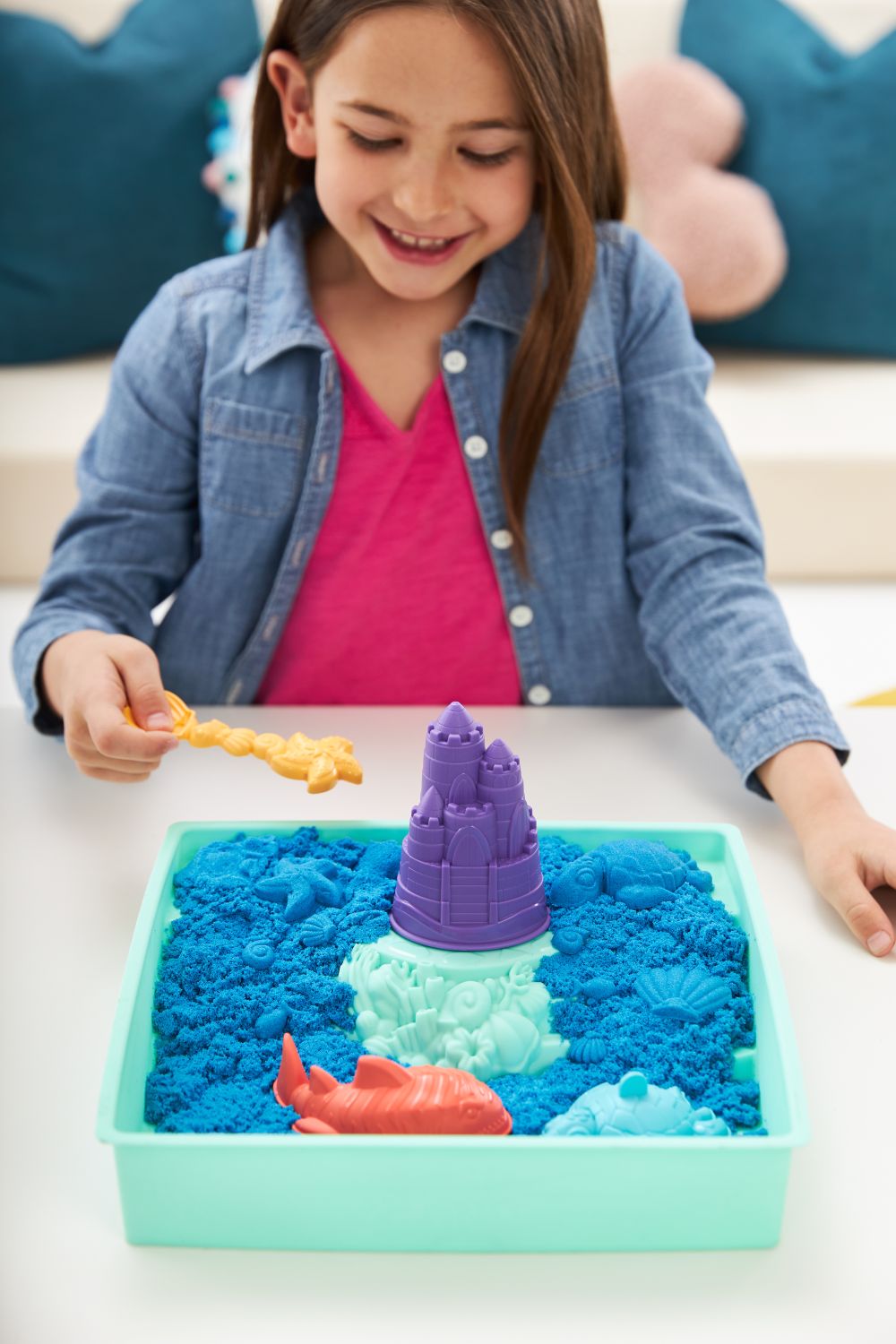 Spin Master KINETIC SAND KRABICE TEKUTÉHO PÍSKU S PODLOŽKOU MODRÁ