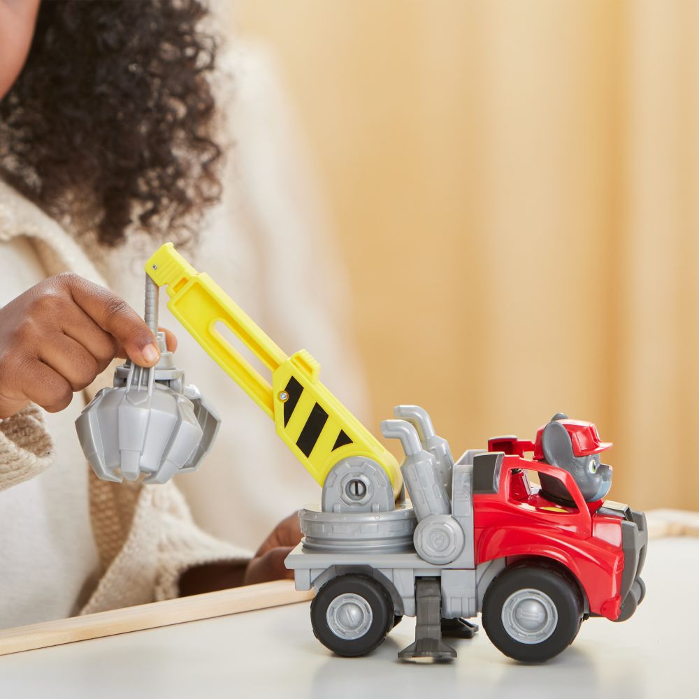 Charger je připraven to „drapnout, zvednout a přesunout“ ve svém zbrusu novém Jeřábu s drapákem Rubble a jeho parta! Tento jeřáb s opravdovými funkčními koly, výsuvným jeřábem a funkčním drapákem je nutností pro všechny fanoušky seriálu Tlapková patrola, kteří milují stavění a budování! Děti si zamilují hru se svými oblíbenými štěňátky, při níž zapojí fantazii a spojí síly se svými rodiči, aby společně uskutečnili stavební projekty ze seriálu a poté je rozšířili o vlastní nápady! Pro ještě větší zábavu se stavebními hračkami zkuste posbírat všechny stavební vozidla Rubble a jeho parta, plyšové hračky a herní sady s figurkami a kinetickým pískem Build-It (prodávají se zvlášť)! Zažijte non-stop stavební dobrodružství se všemi svými oblíbenými štěňaty! Senzorické a hračky a stavebnice Rubble a jeho parta jsou navrženy tak, aby poskytly dětem a rodičům příležitost stavět, hrát si a učit se společně! Tyto figurky a hračky jsou fantastickým dárkem pro děti, které milují stavění a které ještě stále rozvíjejí své jemné motorické dovednosti a představivost! Přiveďte seriál Rubble a jeho parta k životu pomocí Chargerova jeřábu s drapákem!