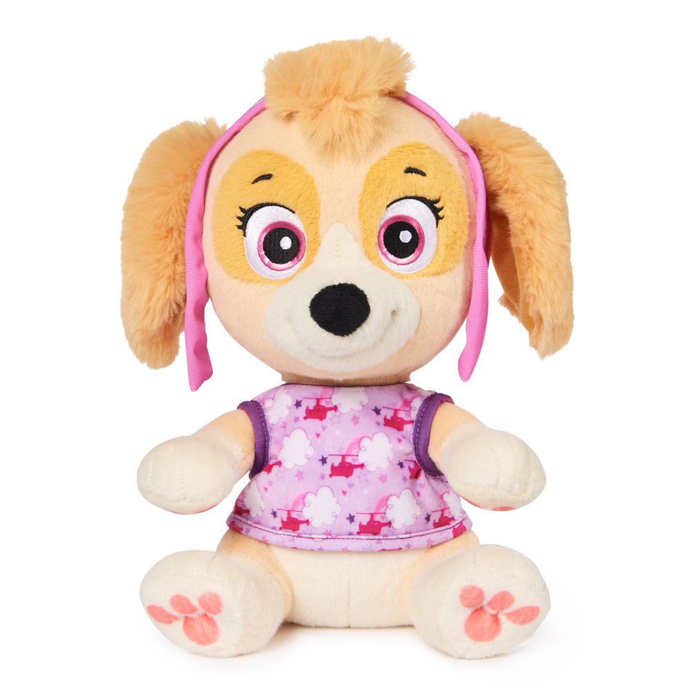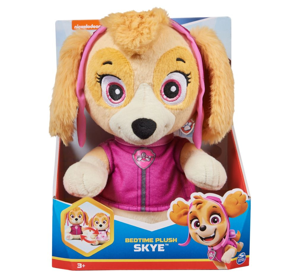 Velký plyšák pro nejmenší fanoušky Tlapkové patroly se dá převléknout z uniformy do pyžama. Provedení Chase a Skye.