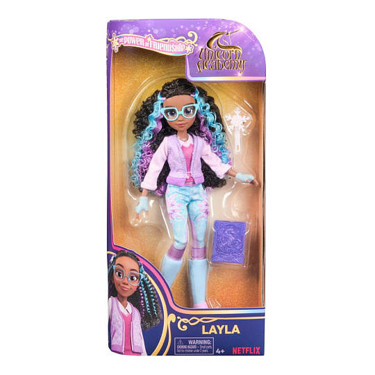 Panenka Layla velikosti 24 cm s krásnými vlasy a autfitem ze seriálu Unicorn Academy.