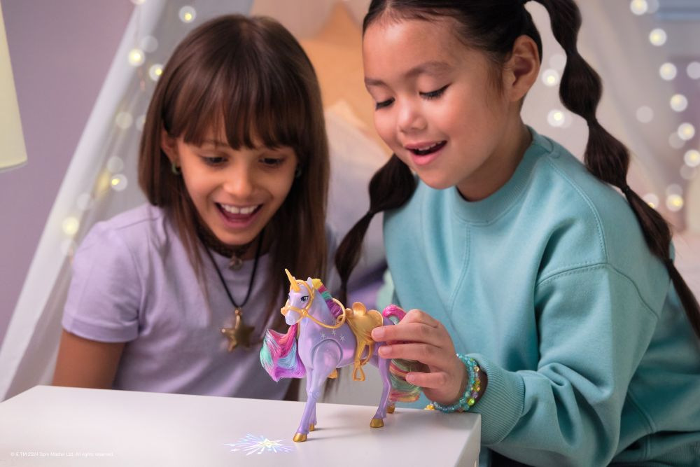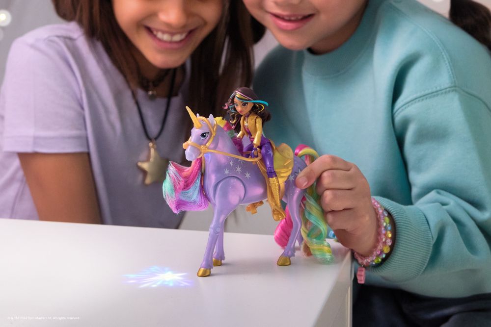 Zažijte kouzlo Jednorožčí akademie díky Sofii a Polárce se světelnou magií! Toto duo inspirované animovaným pořadem od NETFLIXu a bestsellerovou knižní sérií, kde přátelství drží otěže osudu, oslavuje jedinečné pouto mezi jezdcem a jednorožcem. Tato sada podněcuje kouzelnou kreativní hru díky Polárce, která se chlubí věrnými detaily, měkkou duhovou hřívou a ocasem a skutečnými světelnými efekty. Díky 7 kloubům lze Sofii posadit na Polárku a stisknutím tlačítka s hvězdičkou na Polárčině straně lze aktivovat světla a přehrát si své oblíbené scény z pořadu (součástí balení jsou 3 baterie LR44). Když Polárka dupne kopytem, vytvoří pomocí světelné magie duhový vzor, přesně jako v seriálu! Díky odnímatelné uzdě a sedlu zůstane Sofie bezpečně na hřbetu Polárky. Chcete-li objevit všechny způsoby, jak si užít svět Jednorožčí akademie se svými oblíbenými postavami, si prohlédněte další malé panenky, jako jsou Ava, Layla, Isabel a Valentina spolu s jejich jednorožci (sady se prodávají samostatně), rozšiřte svůj kouzelný svět! Určeno pro děti, které mají rády jednorožce a koně, panenky a doplňky, hračky pro panenky, sběratelské předměty, plyšové hračky a další. Hračky s tematikou Jednorožčí akademie jsou perfektním dárkem pro dívky k narozeninám nebo jakékoli jiné příležitosti. Prožijte vlastní zářivé dobrodružství z Jednorožčí akademie díky Sofii a Polárce se světelnou magií!