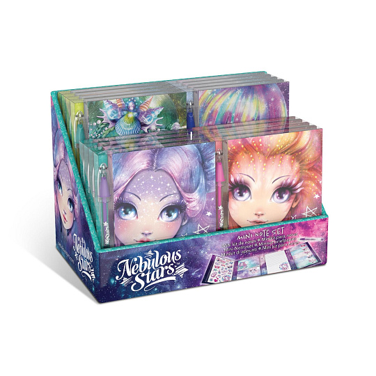 Nebulous Star deník/deníček s propiskou 4 barvy v blistru 11x13x2cm 16ks v boxu