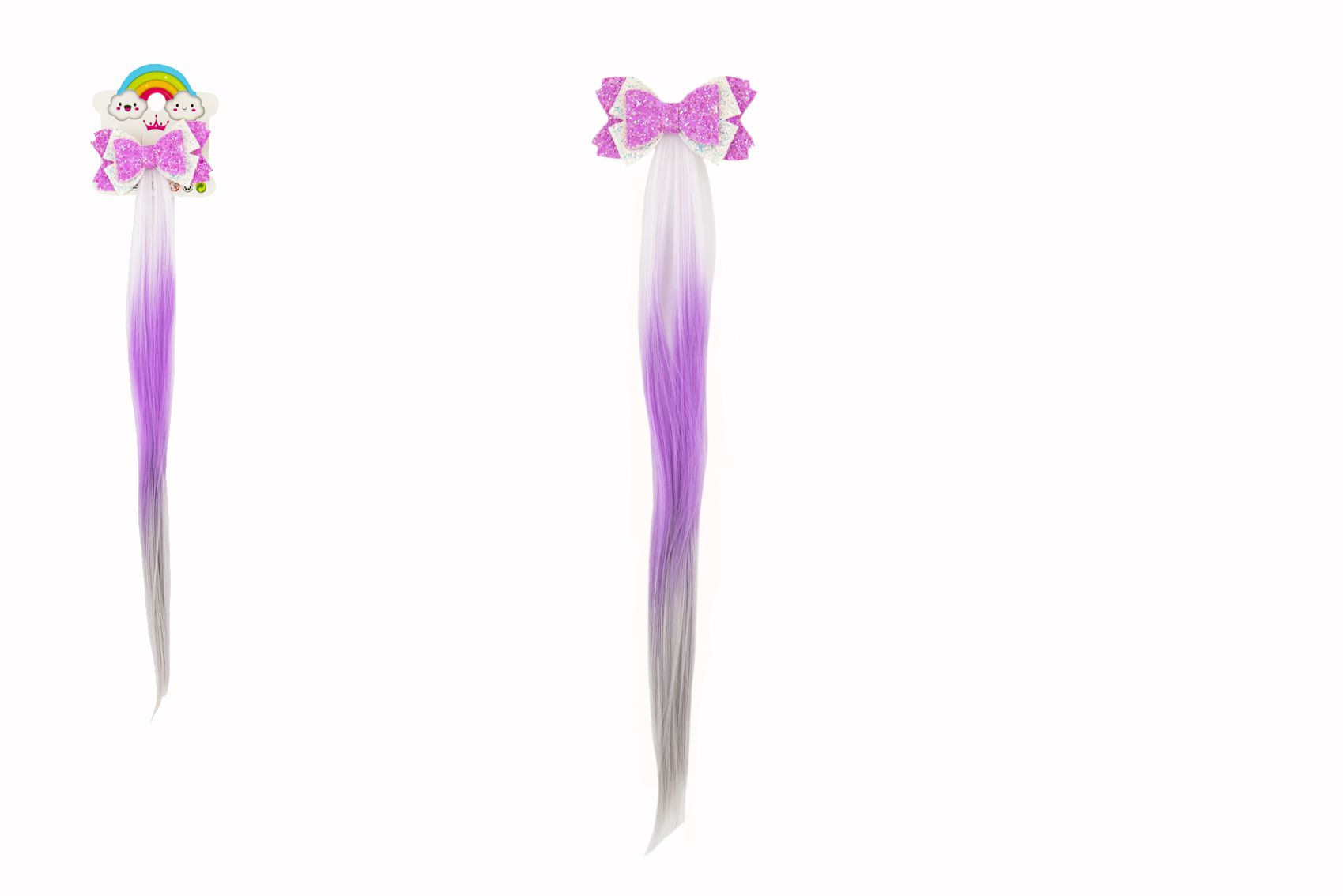 Teddies Spona do vlasů mašle třpytivá s duhovým ombré příčeskem plast/kov 8x38cm v sáčku