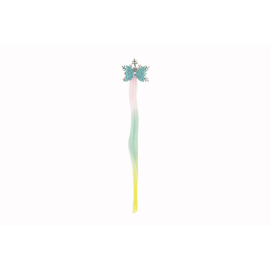 Teddies Spona do vlasů vločka s mašlí s duhovým příčeskem kov/plast 7x38cm v sáčku