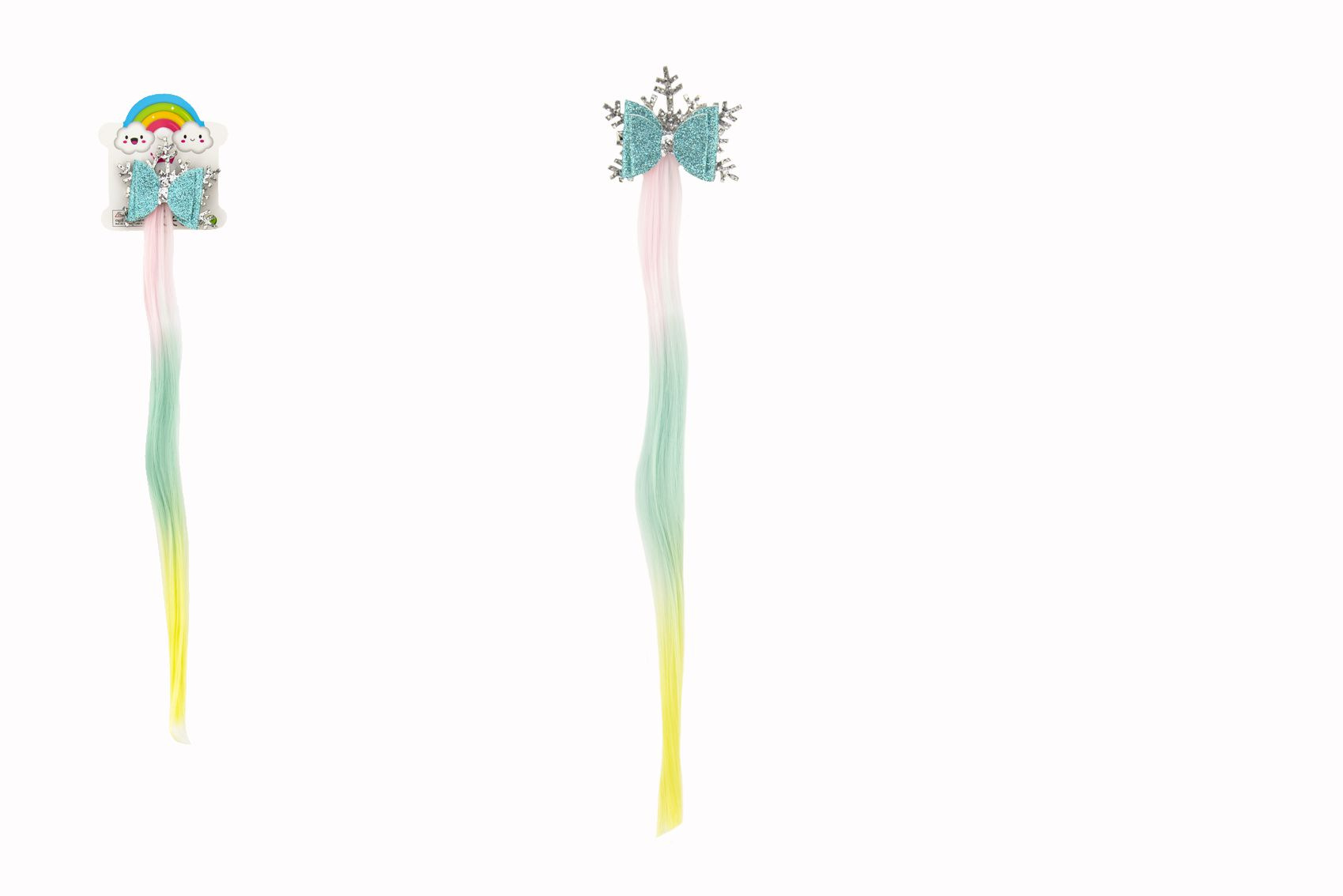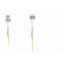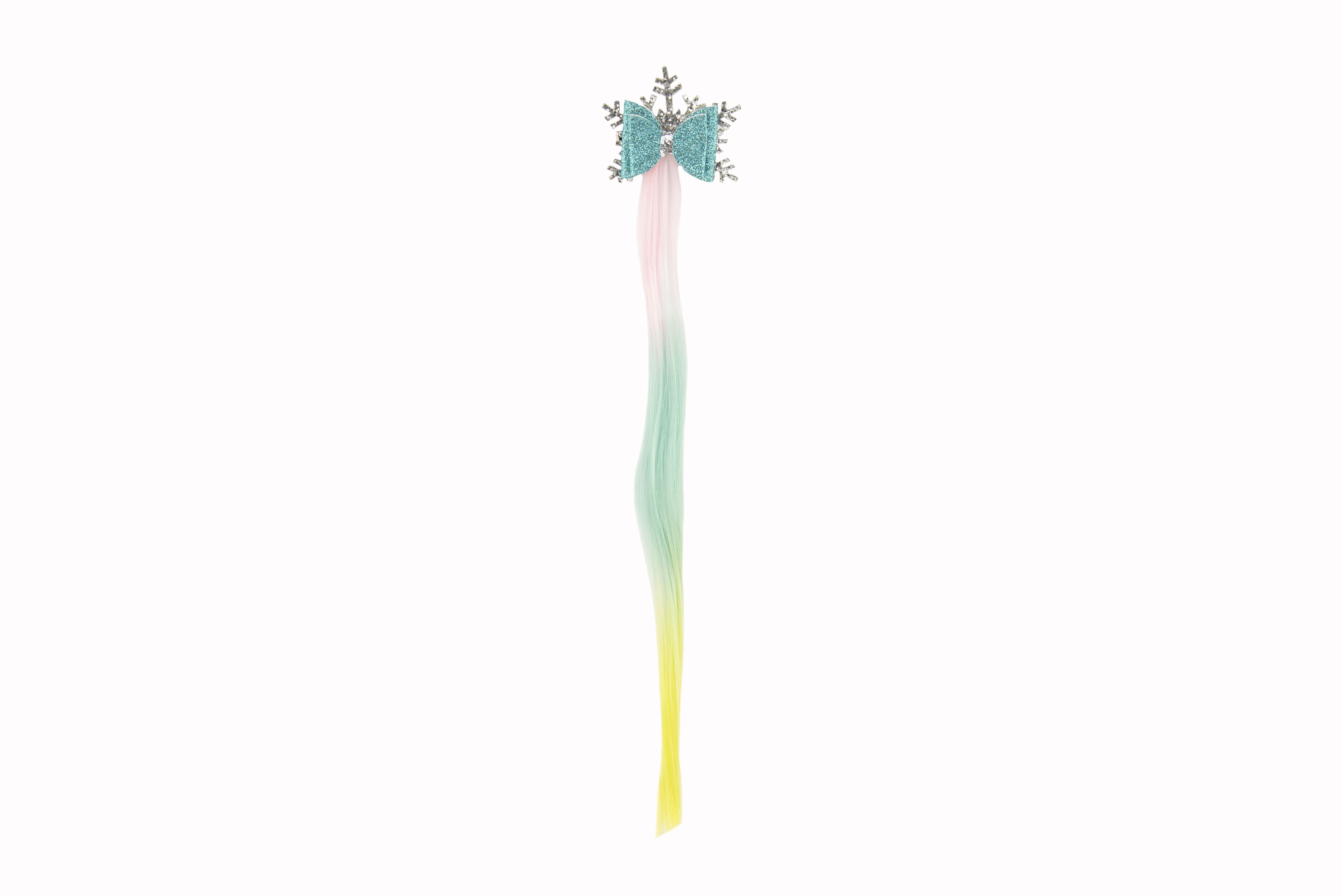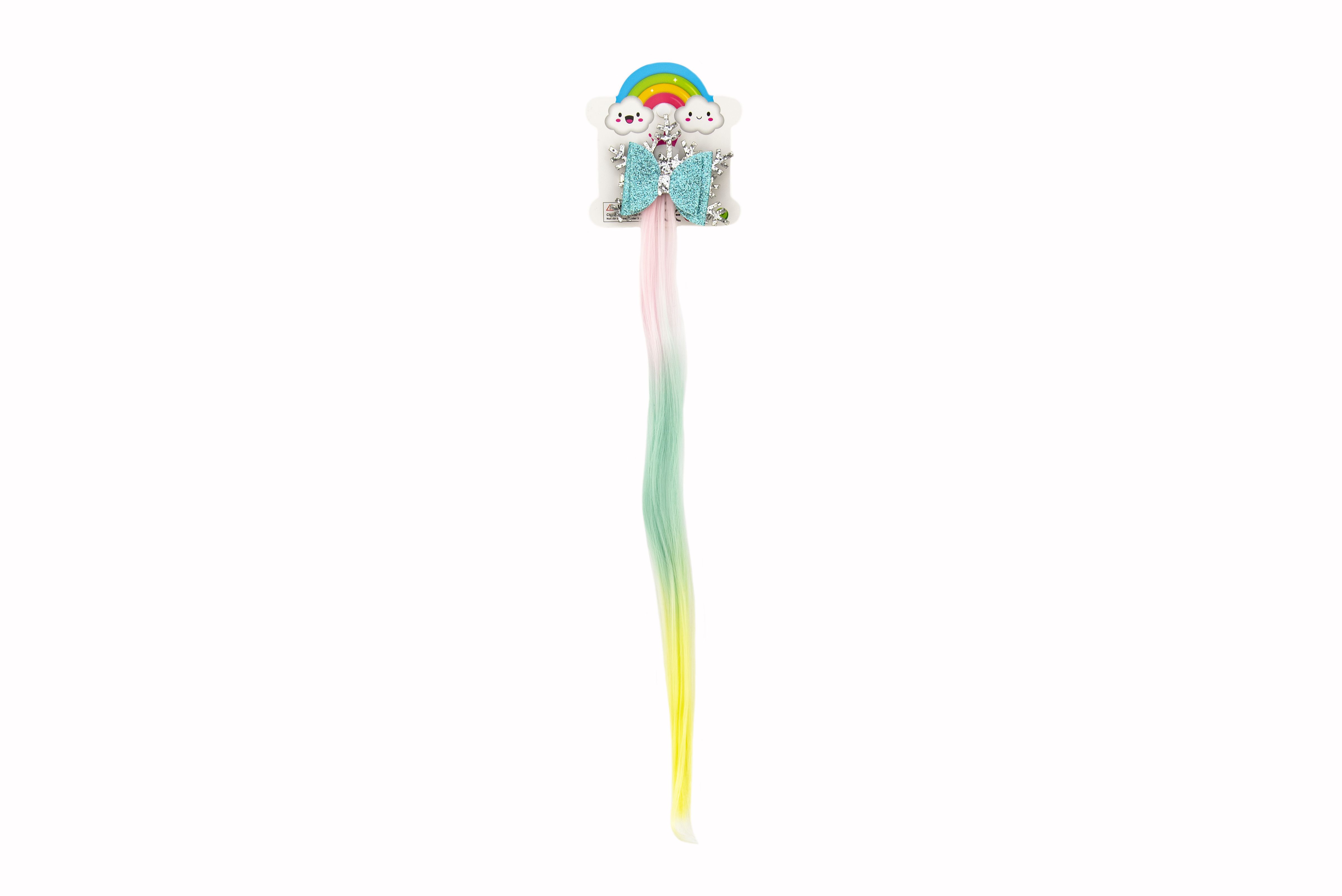Teddies Spona do vlasů vločka s mašlí s duhovým příčeskem kov/plast 7x38cm v sáčku