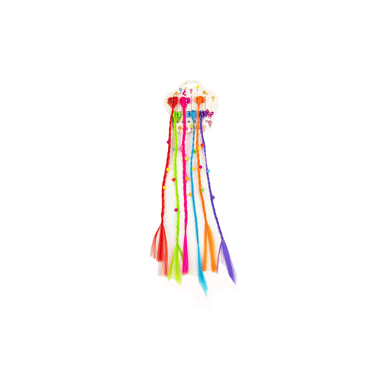 Snad každá holčička si přeje mít barevné dlouhé vlasy. Dopřejte jí to díky barevnému příčesku, který je připevněn na sponce/skřipci do vlasů. Jednotlivé příčesky jsou dlouhé cca 30 cm. Barevné copánky mohou být také vhodným doplňkem ke karnevalovému kostýmu. Balení obsahuje 6 ks copánků s ozdobou v podobě kytiček. Rozměry balení 10 x 36 x 1 cm. Vhodné pro děti od 3 let.