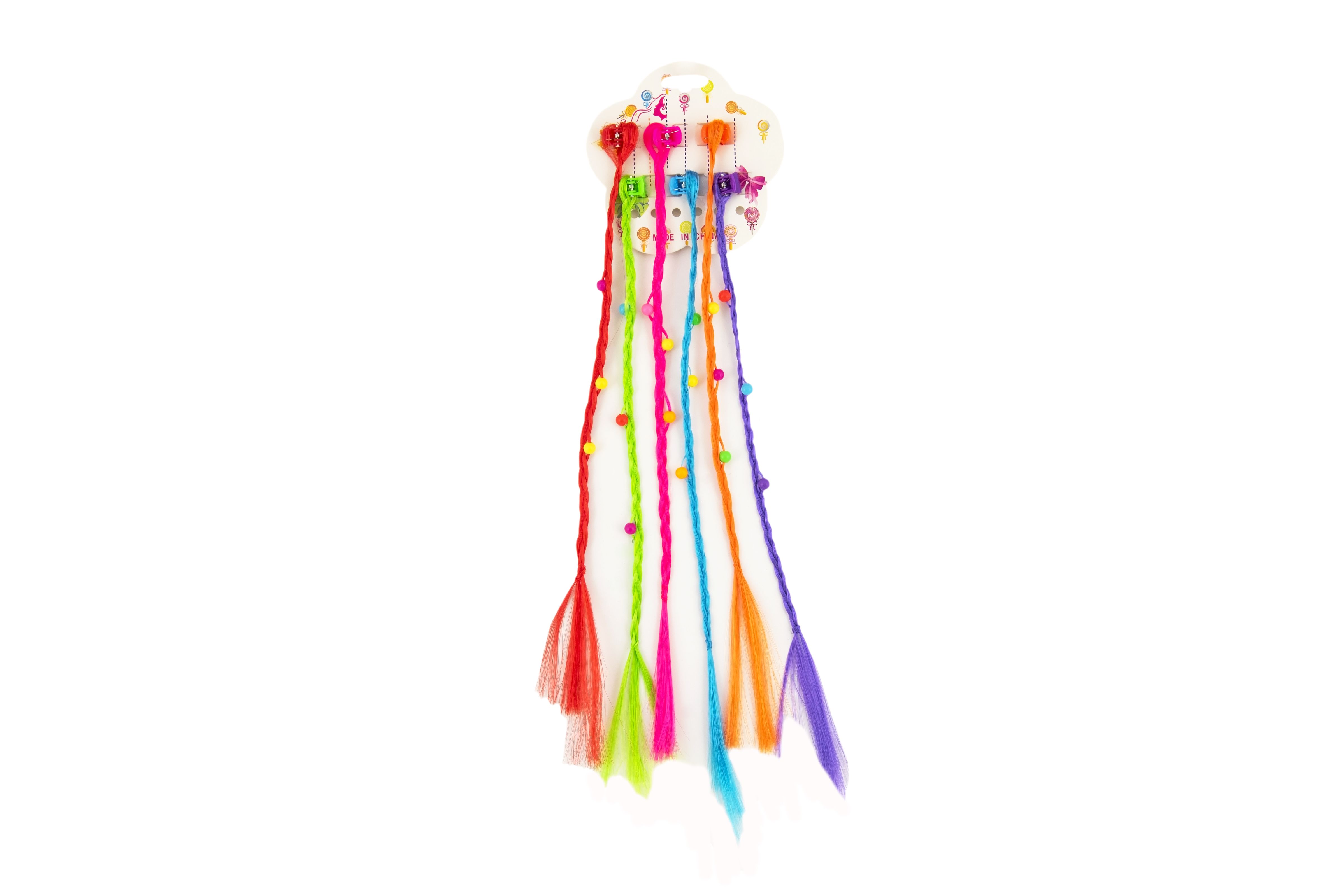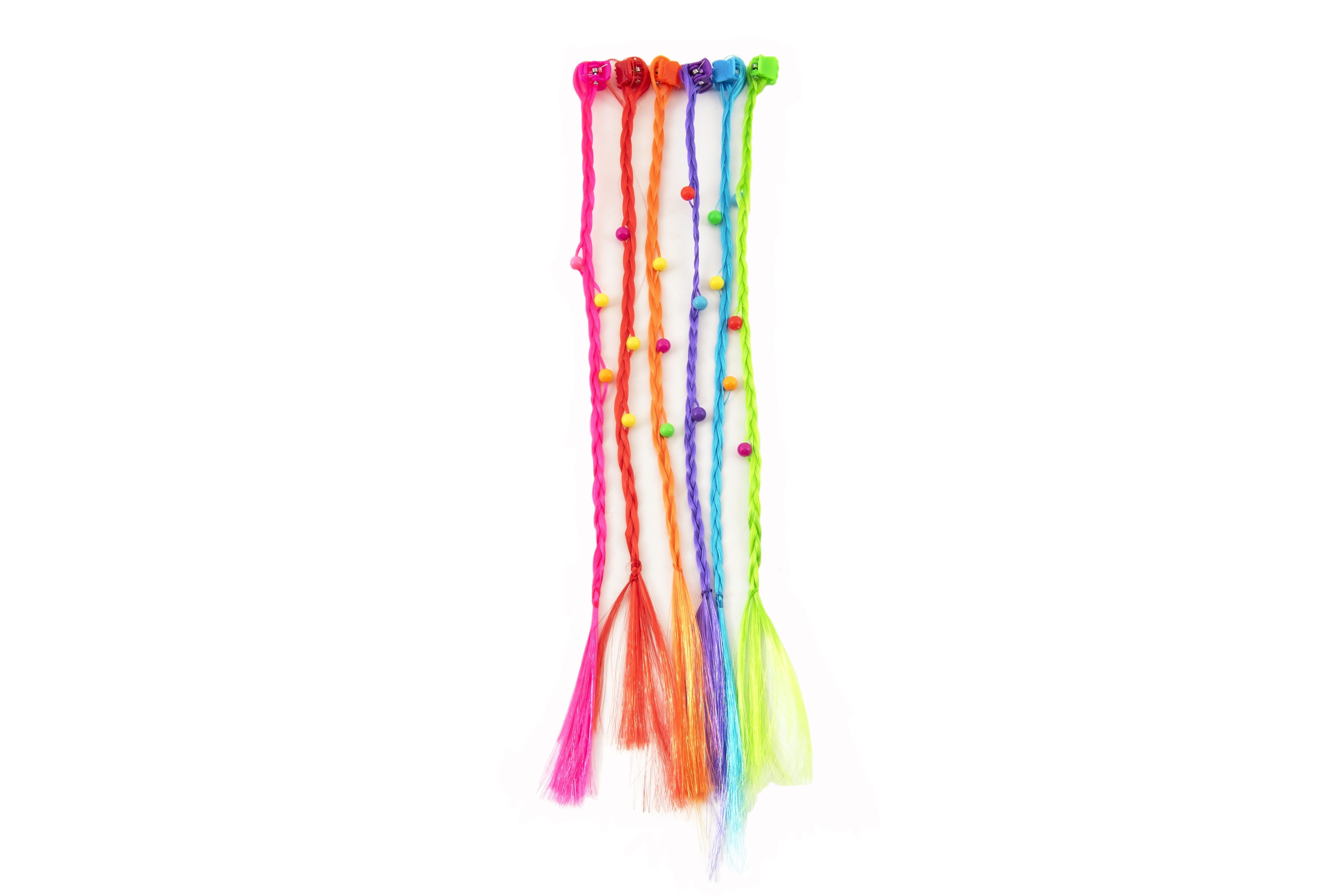 Snad každá holčička si přeje mít barevné dlouhé vlasy. Dopřejte jí to díky barevnému příčesku, který je připevněn na sponce/skřipci do vlasů. Jednotlivé příčesky jsou dlouhé cca 30 cm. Barevné copánky mohou být také vhodným doplňkem ke karnevalovému kostýmu. Balení obsahuje 6 ks copánků s ozdobou v podobě kytiček. Rozměry balení 10 x 36 x 1 cm. Vhodné pro děti od 3 let.