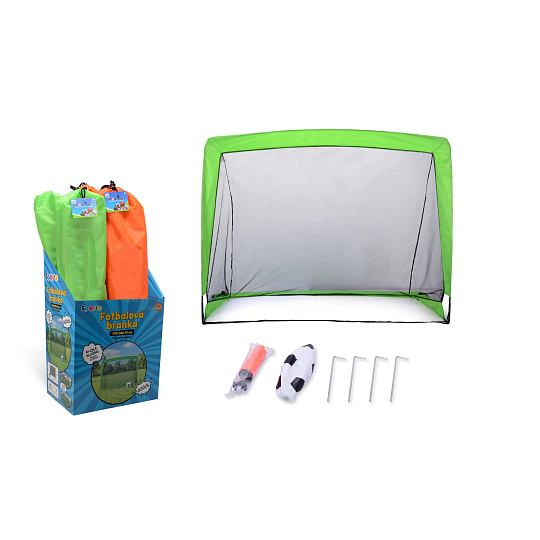 Odolné materiály: Síť je vyrobena z pevného vícevláknového polyesteru a rám z pružného laminátu, který odolá nepřízni počasí i prudkým nárazům míče. Obsah balení: 1x skládací branka, 4x kotvící kolíky, 1x přenosná taška, míček a pumpička Rozměr branky: 120x90x70 cm