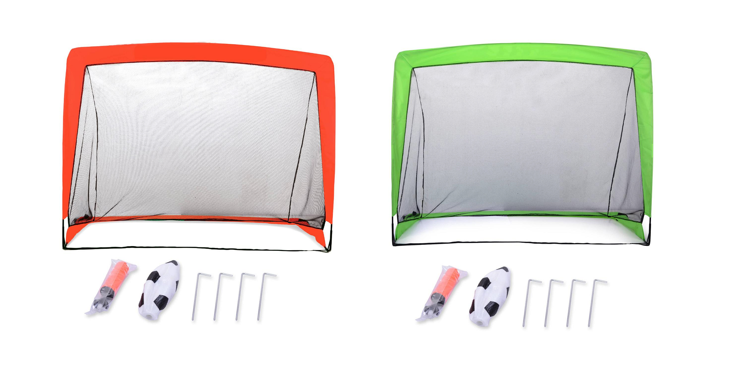 Odolné materiály: Síť je vyrobena z pevného vícevláknového polyesteru a rám z pružného laminátu, který odolá nepřízni počasí i prudkým nárazům míče. Obsah balení: 1x skládací branka, 4x kotvící kolíky, 1x přenosná taška, míček a pumpička Rozměr branky: 120x90x70 cm