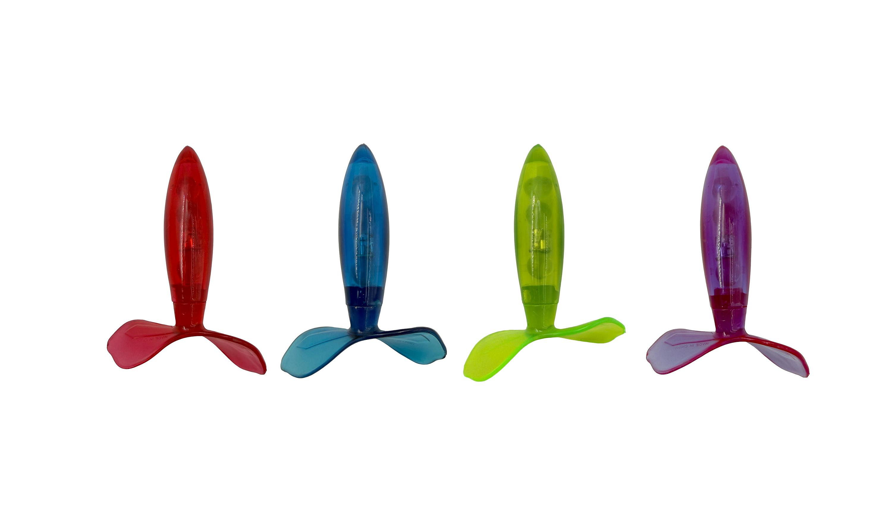 Motivace k pohybu: Snaha dohonit svítící torpédo pod vodou přirozeně zlepšuje fyzickou kondici, kapacitu plic a plaveckou techniku. Provoz na baterie 12x1,5V AG3 (jsou součástí, nelze vyměnit).