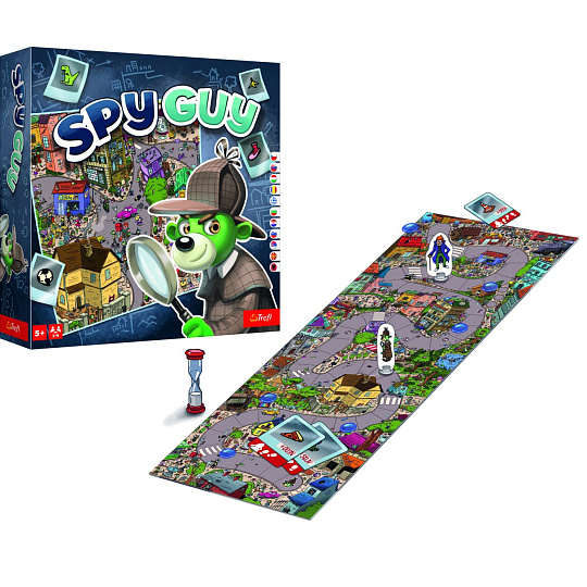 Ve městě došlo k sérii krádeží za bílého dne... Evidentně za nimi stojí vychytralý doktor Moritz, zatím se ho však nepodařilo dopadnout. Místní doufají, že jim pomůže Spy Guy - super detektiv, který v Treflíkově chrání zákon a pořádek. Dokáže Spy Guy chytit doktora Mortize dřív, než uprchne? Spy Guy je kooperativní hra, v níž záleží na bystrých očích a dobré spolupráci. Hledejte stopy na velké mapě města. Čím víc stop najdete, tím rychleji doktora Mortize chytíte. Obsah balení: hrací deska, 2 figurky se stojánky, přesýpací hodiny, 56 karet stop, 10 žetonů k označení stop, návod. Velikost balení: 26 x 26 x 6 cm Vhodné pro děti od 5 let