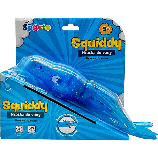 Oliheň Squiddy je velmi rychlá a snaží se ti uplavat. Při nárazu do vany nebo bazénu změní směr a plave dál. Při plavání svítí a otáčí se. Doženeš jí nebo ti uplave? Squiddy je zábavná hračka na léto, ale i na zimu. Může plavat v bazénu nebo ve vaně. \nBaterie: 2xAA 1,5 V – nejsou součástí balení