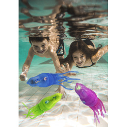 Oliheň Squiddy je velmi rychlá a snaží se ti uplavat. Při nárazu do vany nebo bazénu změní směr a plave dál. Při plavání svítí a otáčí se. Doženeš jí nebo ti uplave? Squiddy je zábavná hračka na léto, ale i na zimu. Může plavat v bazénu nebo ve vaně. \nBaterie: 2xAA 1,5 V – nejsou součástí balení