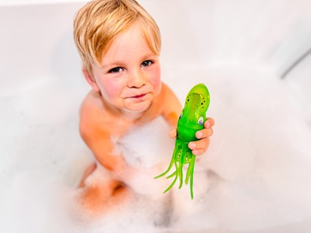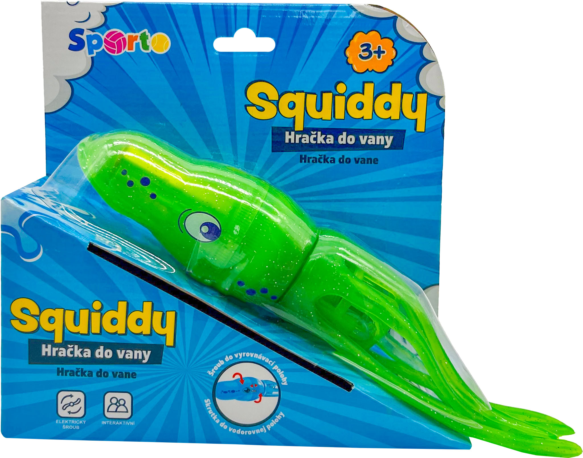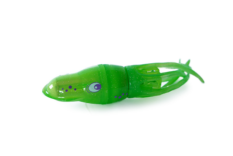 Oliheň Squiddy je velmi rychlá a snaží se ti uplavat. Při nárazu do vany nebo bazénu změní směr a plave dál. Při plavání svítí a otáčí se. Doženeš jí nebo ti uplave? Squiddy je zábavná hračka na léto, ale i na zimu. Může plavat v bazénu nebo ve vaně. \nBaterie: 2xAA 1,5 V – nejsou součástí balení