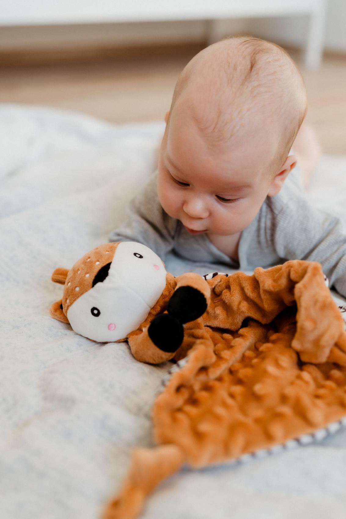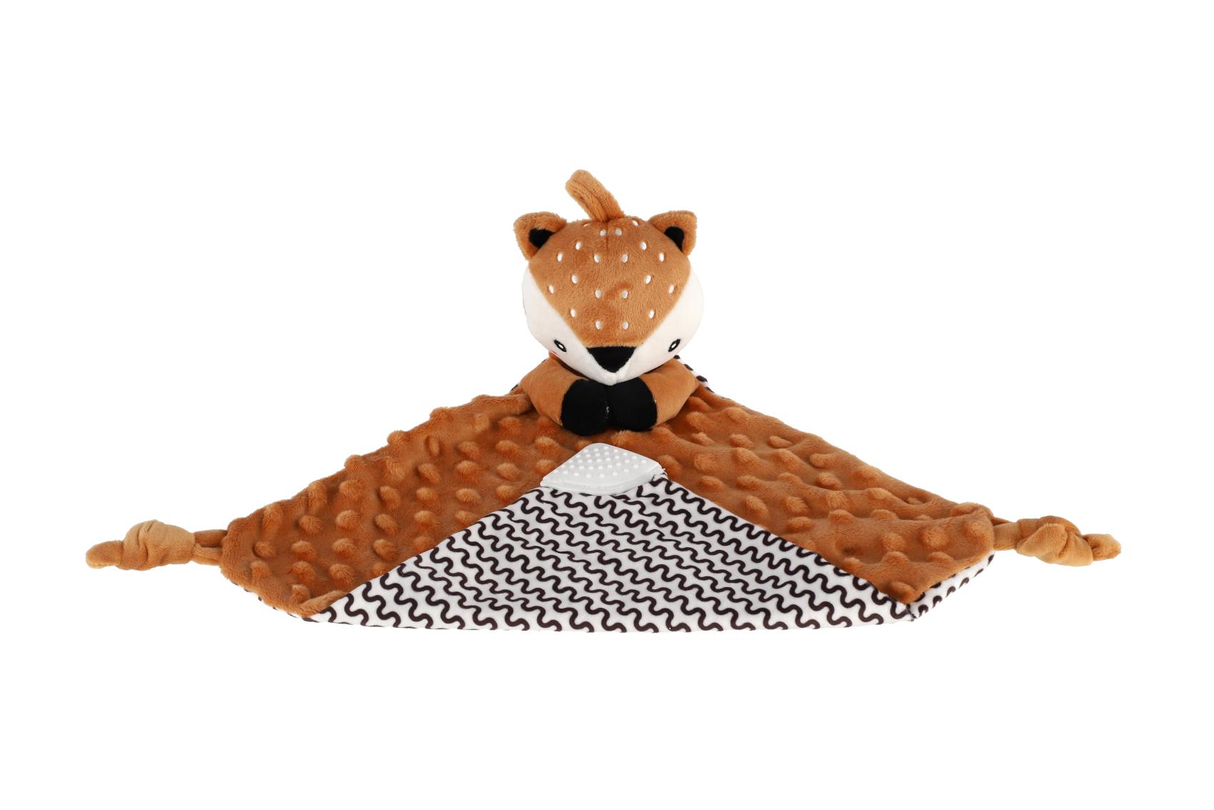 Roztomilý plyšový usínáček ve tvaru srnečka je ideálním společníkem pro nejmenší miminka již od narození. Měkoučká látka typu minky s 3D puntíky poskytuje příjemný dotek, který miminko uklidňuje a podporuje jeho smyslový rozvoj. Součástí je také měkké kousátko vhodné při prořezávání zoubků a jemné chrastítko, které podporuje zvědavost a rozvíjí sluchové vnímání. Usínáček je navíc certifikován v ČR, takže splňuje přísné požadavky na bezpečnost pro ty nejmenší.