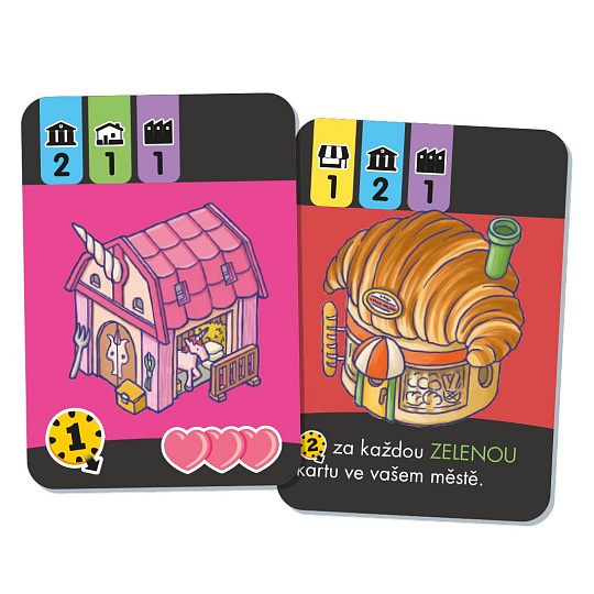 Vybudujte pomocí karet město, které bude plné šťastných obyvatel. Během hry budete nakupovat budovy do svého města, které poskytují buď nové obyvatele nebo srdíčka spokojenosti. Cílem hry je získat co nejvíce bodů - štěstí, které se na konci vypočítá jako násobek obyvatel a srdíček na kartách ve vašem městě.