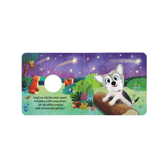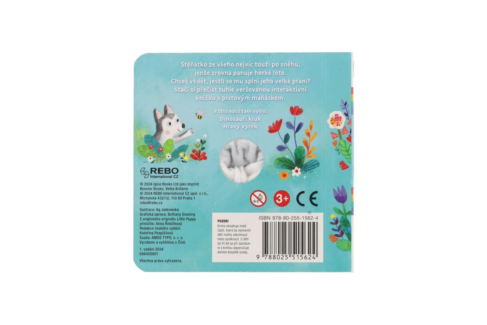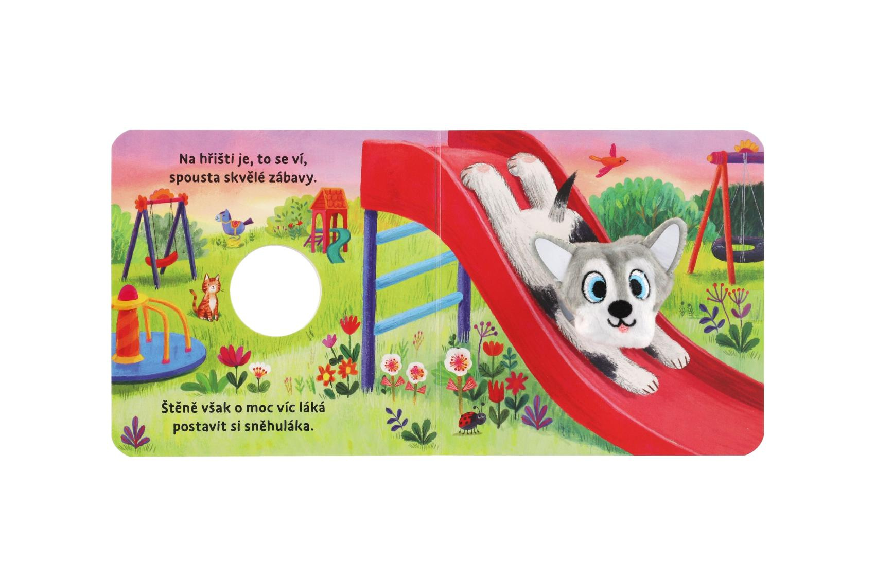 Štěňátko ze všeho nejvíc touží po sněhu, jenže zrovna panuje horké léto... jeho příběh malého posluchače zaujme díky hravým veršíkům i díky tomu, že hlavního hrdinu nepředstavuje pouhá ilustrace v knížce, ale prstový maňásek připevněný ke knize, kterého si může i pohladit nebo si s ním pohrát.