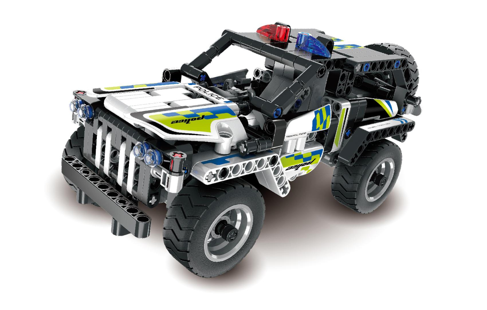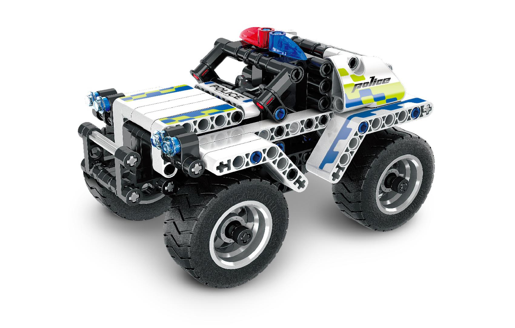Stavebnice iM.MASTER policejní auto na zpětné natažení plast 199 dílků v krabici 29x20x6cm