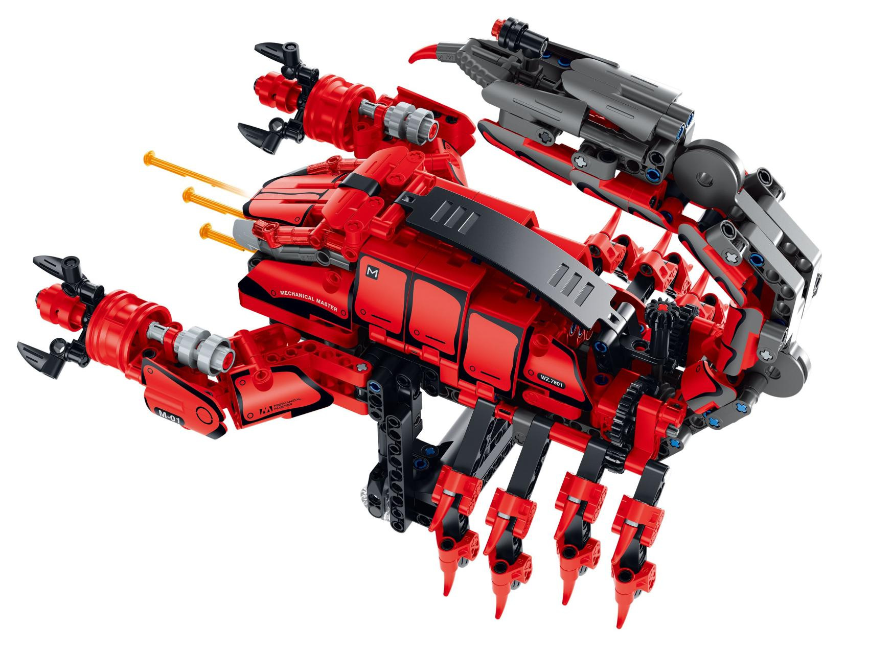Sestavte si impozantního červeného škorpiona, který se během chvilky promění v mechanickou zbraň na ruku. Uchycení na ruku: pomocí nastavitelného mechanismu. Ovládací mechanismus na spodní straně umožňuje pohyb drápy, klepety a ocasem. Design ve stylu kybernetického brnění – vhodný i jako nositelný model. Vystřelovací prvky a realistické klouby. STEM vzděeelávání: rozvíjí technickou představivost, logiku a konstrukční dovednosti. Rozměry balení 35 x 27 x 7 cm Vhodné pro děti od 6 let