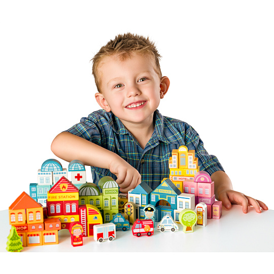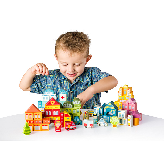 Woody Stavebnice kostky Město v kyblíku, 115 ks