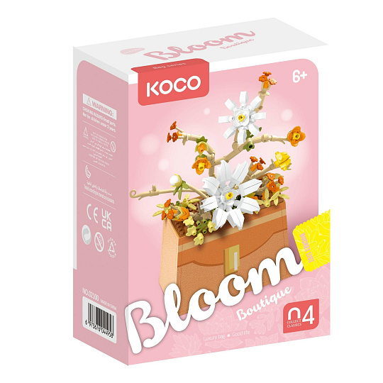 Mini stavebnice KOCO Květina v kabelce potěší každého milovníka tvoření i květin. Z 232 plastových dílků si děti i dospělí sestaví stylovou květinu zasazenou do elegantní kabelky, která poslouží jako milý dárek, dekorace na stůl nebo sběratelský kousek. Různé druhy v sérii umožňují kombinování barev i tvarů. Skládání podporuje trpělivost, kreativitu i jemnou motoriku – ideální zábava nejen pro malé ruce. Rozměry balení: 11 cm × 15 cm × 6 cm Vhodné pro děti od 6 let