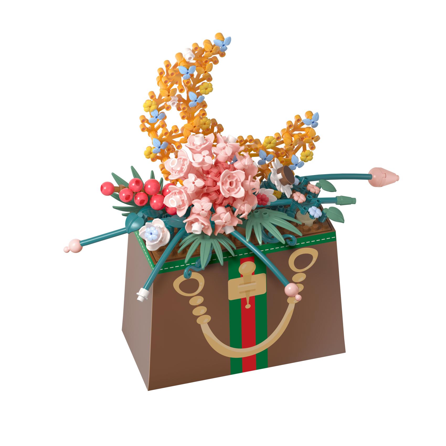 Stavebnice mini KOCO Květina v kabelce plast 245ks v krabičce 11x15x6cm