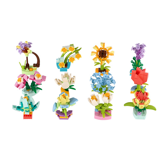 Stavebnice umožňuje dětem sestavovat různé druhy květin z plastových dílků. Každá květina se skládá z několika částí, součástí je obrázkový návod. Díky mixu různých druhů květin mohou děti vytvářet pestré a jedinečné květinové kombinace. Stavebnice je skvělá pro rozvoj dětské představivosti a zručnosti a může být použita i jako dárek pro malé kreativce. Rozměr výrobku 6 cm. Vhodné pro děti od 3 let.