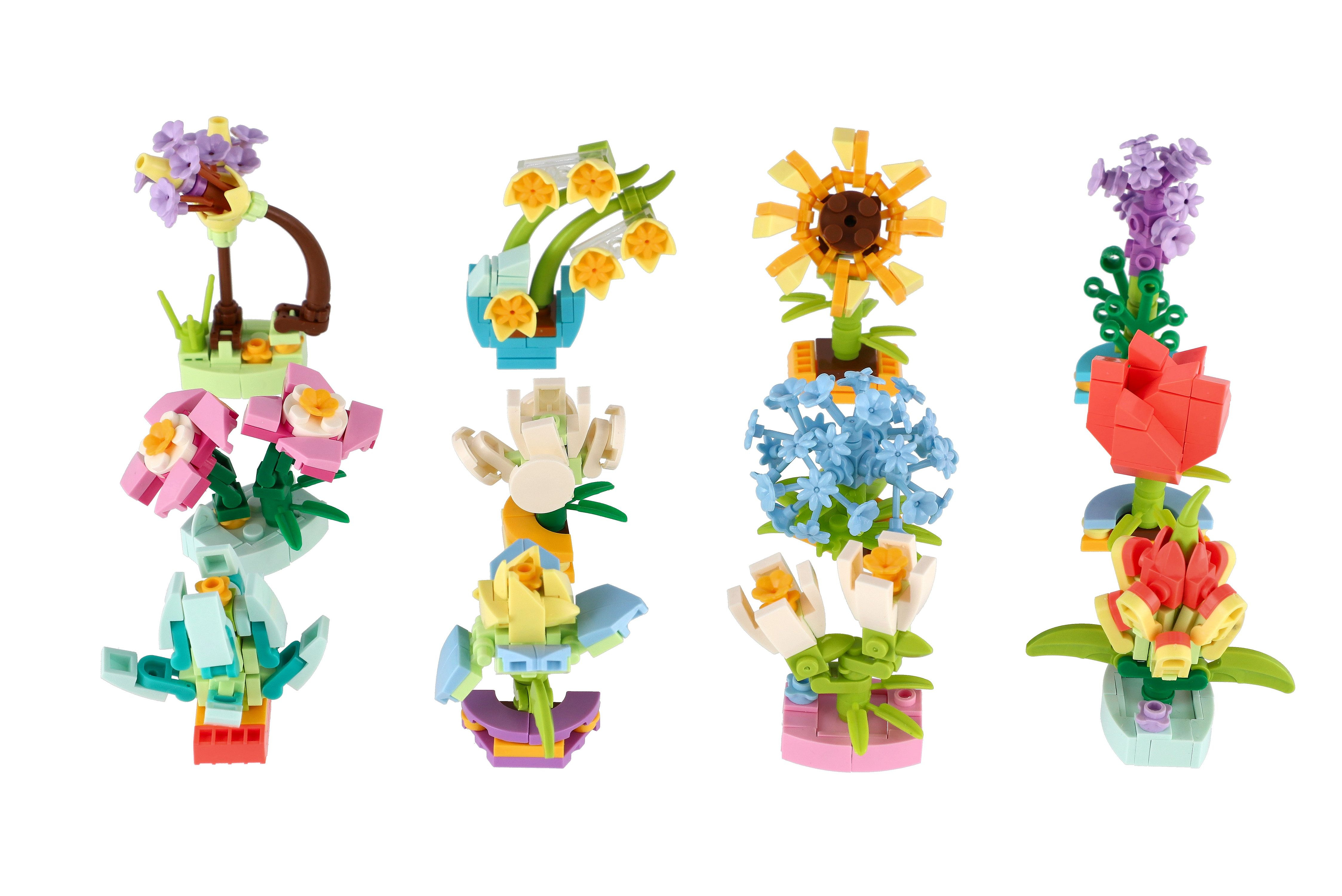 Stavebnice umožňuje dětem sestavovat různé druhy květin z plastových dílků. Každá květina se skládá z několika částí, součástí je obrázkový návod. Díky mixu různých druhů květin mohou děti vytvářet pestré a jedinečné květinové kombinace. Stavebnice je skvělá pro rozvoj dětské představivosti a zručnosti a může být použita i jako dárek pro malé kreativce. Rozměr výrobku 6 cm. Vhodné pro děti od 3 let.