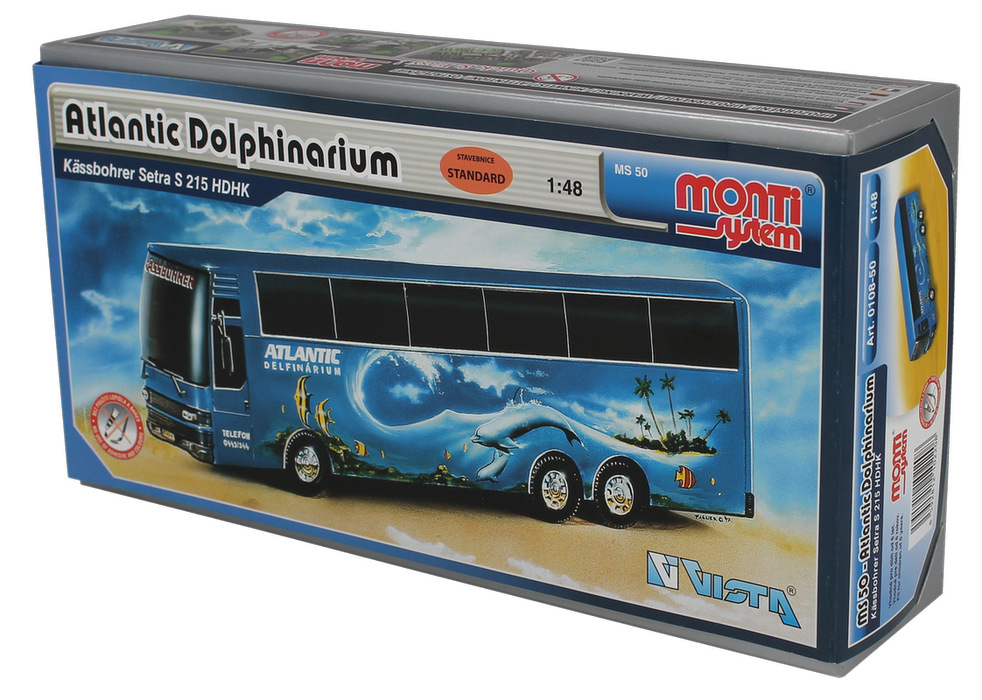 Stavebnice Monti System MS 50 Atlantic Dolphinarium Bus 1:48 v krabici 31,5x16,5x7,5cm