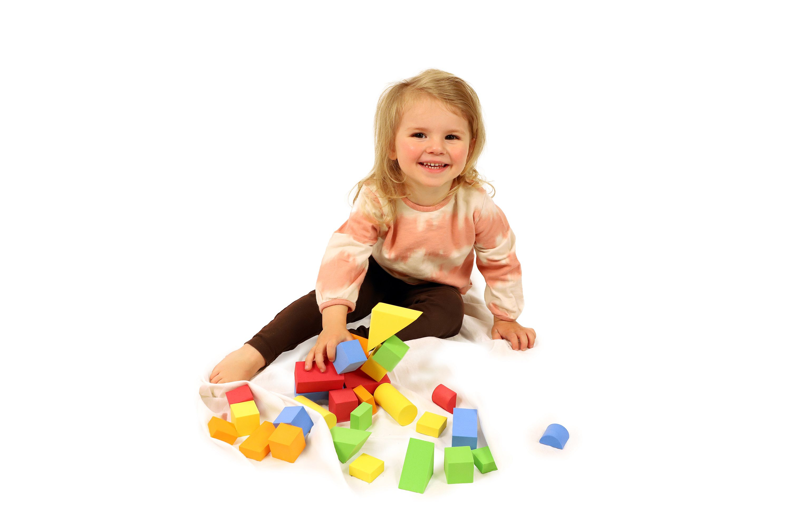 Kostky jsou vyrobeny z měkkého, gumového a netoxického materiálu. Pomocí kostek se u dětí rozvíjí jemná motorika rukou a díky barevnému provedení kostek i zrak. Kostky jsou baleny v plastové tašce. Sada obsahuje 29 ks. Rozměry balení 24,5 x 16 x 4 cm. Vhodné pro děti od 3 let.