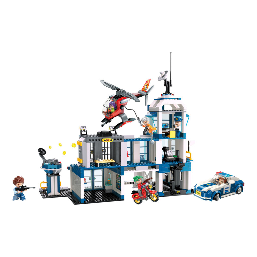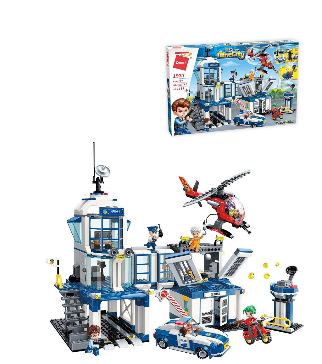 Policejní stanice s mnoha pohyblivými prvky a mechanismy. Vytvořte si vlastní bojové scénky... Budete na straně policistů nebo zlodějů? Vyrobeno z netoxického ABS plastu, v balení 731 dílků.