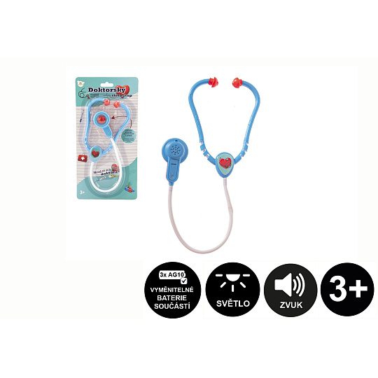 Doktor/lékař stetoskop plast 53cm na baterie se světlem se zvukem na kartě 17x34x3cm