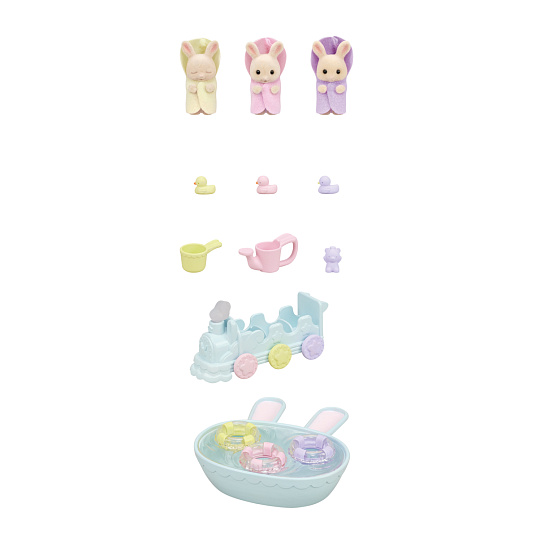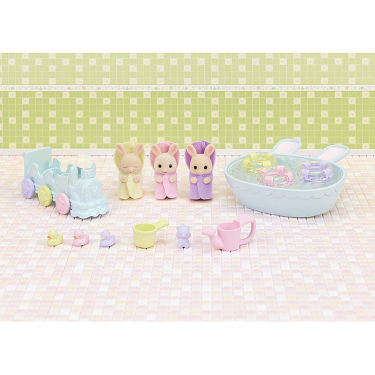 Sylvanian Families Koupelová sada s baby trojčaty mléčných králíčků