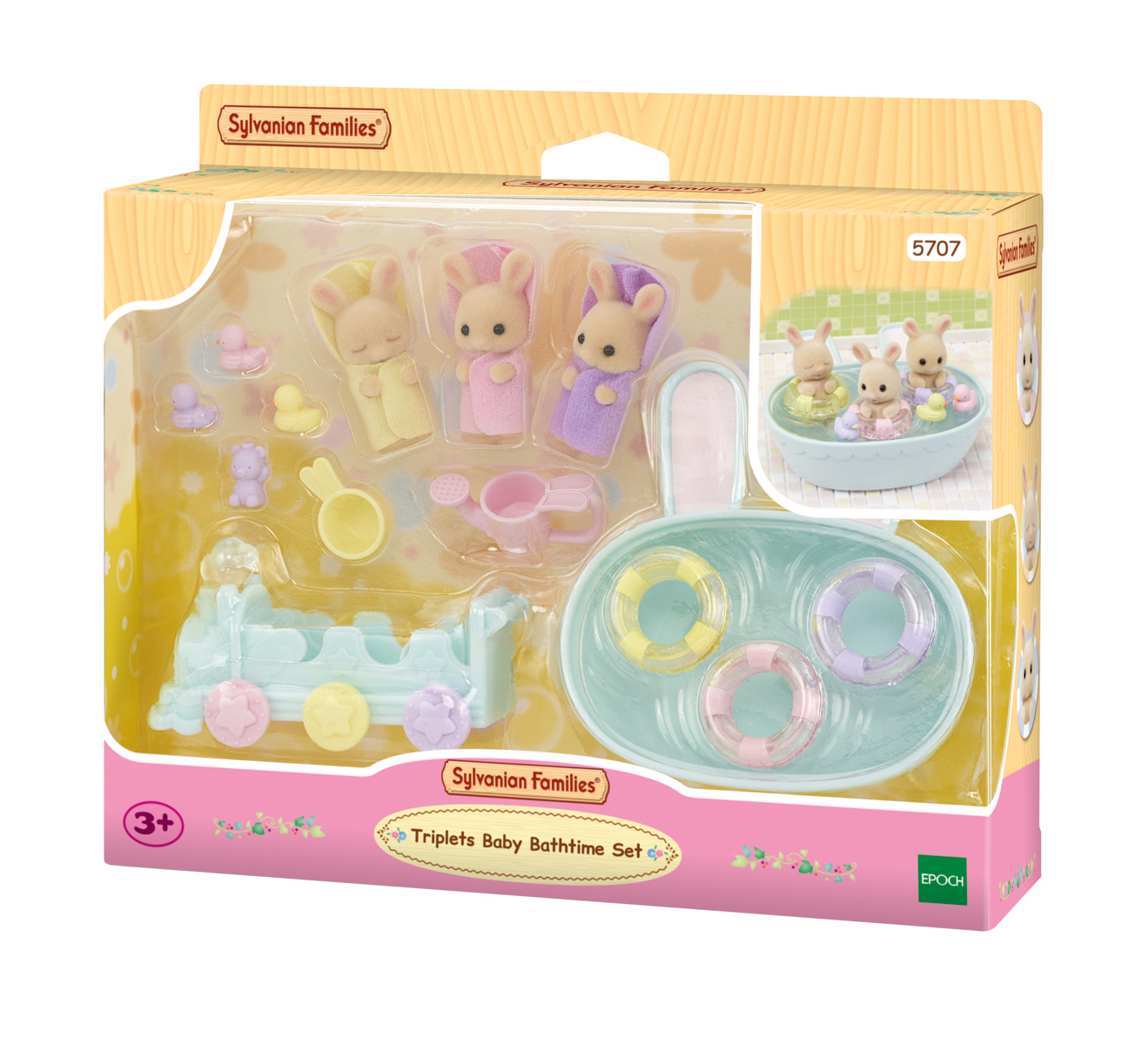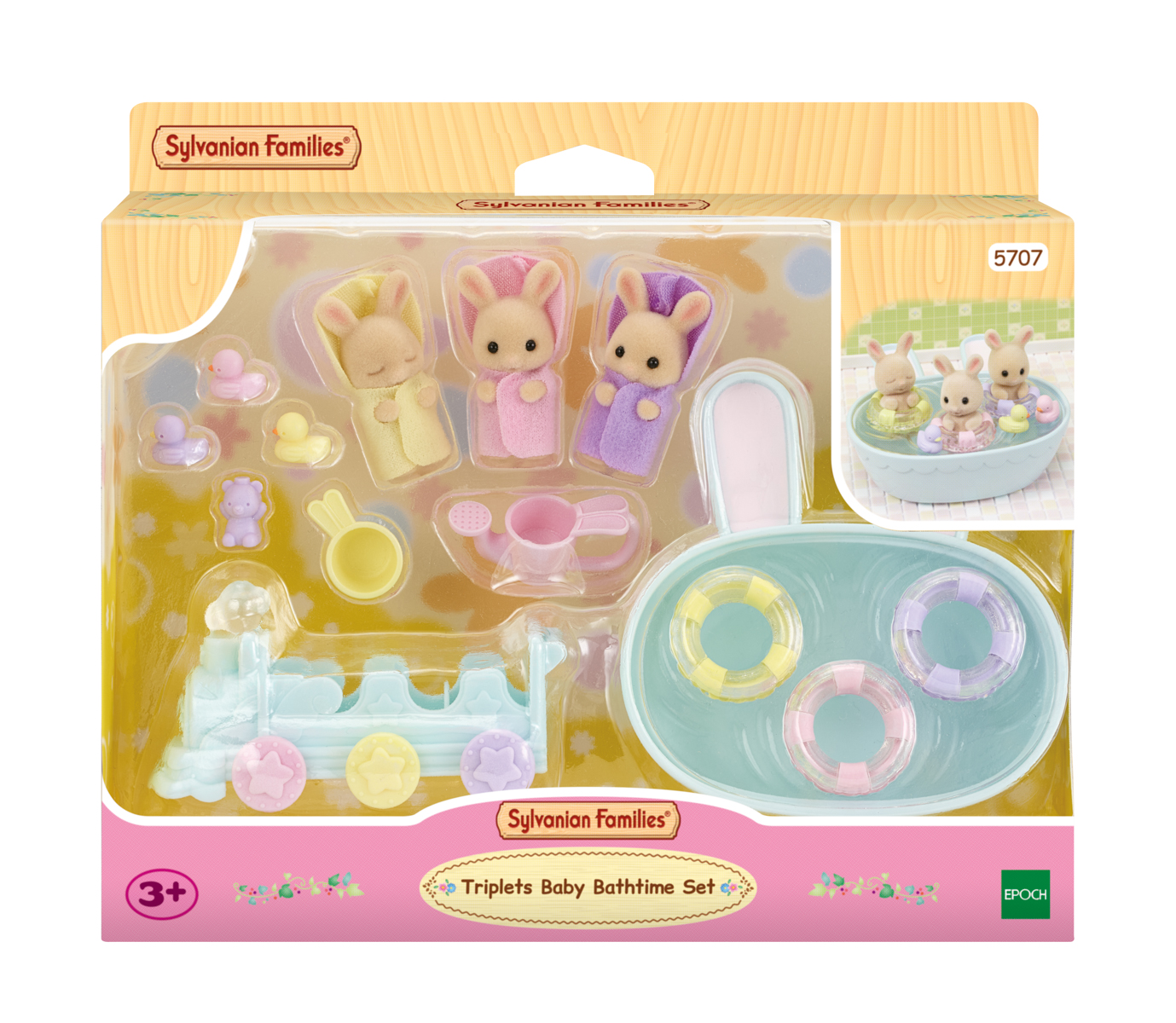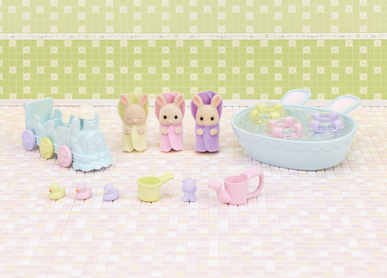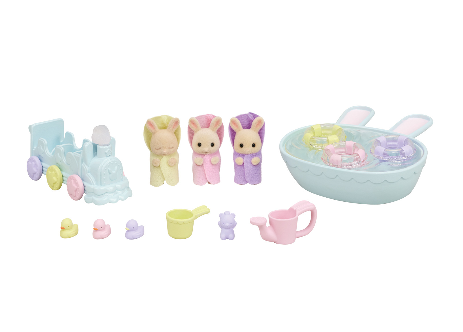 Sylvanian Families Koupelová sada s baby trojčaty mléčných králíčků
