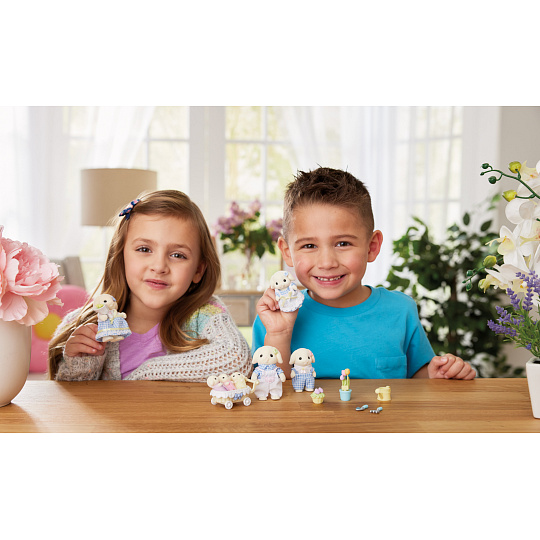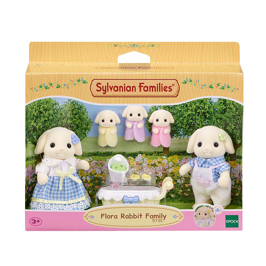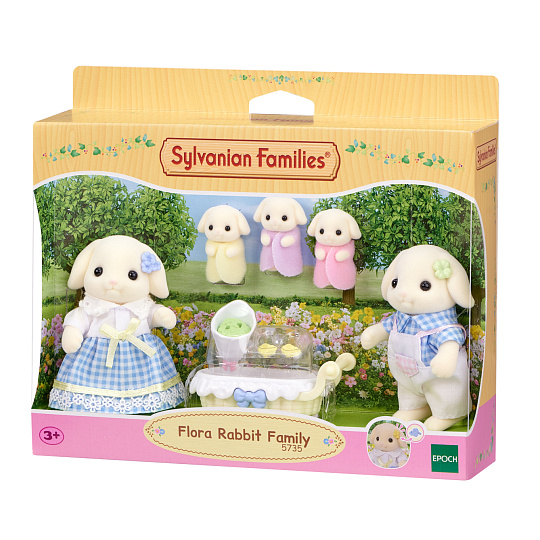 Květinový set Flora Rabbit obsahuje roztomilé figurky holčičky a chlapečka z rodiny Flora Rabbit s padajícími oušky a zahradní doplňky. Děti milují květiny. Sada obsahuje tulipány, lopatku a konev a další doplňky pro péči o květiny. Kytičky na uších figurek lze vyměnit. Na uši chlapce a dívky můžete umístit jednu ze čtyř květin. Květiny lze umístit i do květináče. Děti Flora Rabbit se oblékají do stylových kostkovaných oblečků. Alice, dívka z rodiny Flora Rabbit, miluje prohlížení knih s obrázky rostlin rostoucích v zemi Sylvanian Families. Často tráví čas prohlížením alb s obrázky květinse svým přítelem Haydenem, chlapcem z rodiny Huskyho pejsků. Obvykle je velmi opatrná a mluví pomalu, ale když vypráví o květinách, slova jí vyletí z úst, aniž by si to pamatovala. Lennon, chlapec z rodiny Flora Rabbit, je tak trochu neohrabaný. Práce na zahradě ho natolik pohltí, že se mu stane, že zalévá prázdné květináče, ve kterých ještě nejsou ani semínka! Sadu lze kombinovat s rodinou Flora Ra