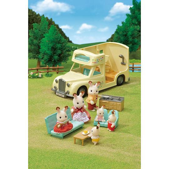 Užijte si vaření, grilování, jízdu na kole, rybaření a další zábavné aktivity v kempu s Rodinným obytným vozem se sedmi sedadly. V obytném voze mohou spát dvě dospělé figurky, dvě baby figurky, dvojčata a miminko. Sedadla lze sklopením přeměnit na postel. Kuchyň schovaná pod palubní dekou obsahuje pánev, kukuřici a grilovanou rybu. Ulovte čerstvé ryby s rybářským prutem a přineste je v kbelíku. Dětské horské kolo, dětské kolo a rybářský prut lze uložit do zadního nosiče. Užijte si více zábavy s dalšími figurkami a doplňky Sylvanian Families (prodává se samostatně). Herní sady a figurky Sylvanian Families jsou nadčasové a vysoce kvalitní hračky. Hra podněcuje představivost dítěte.
