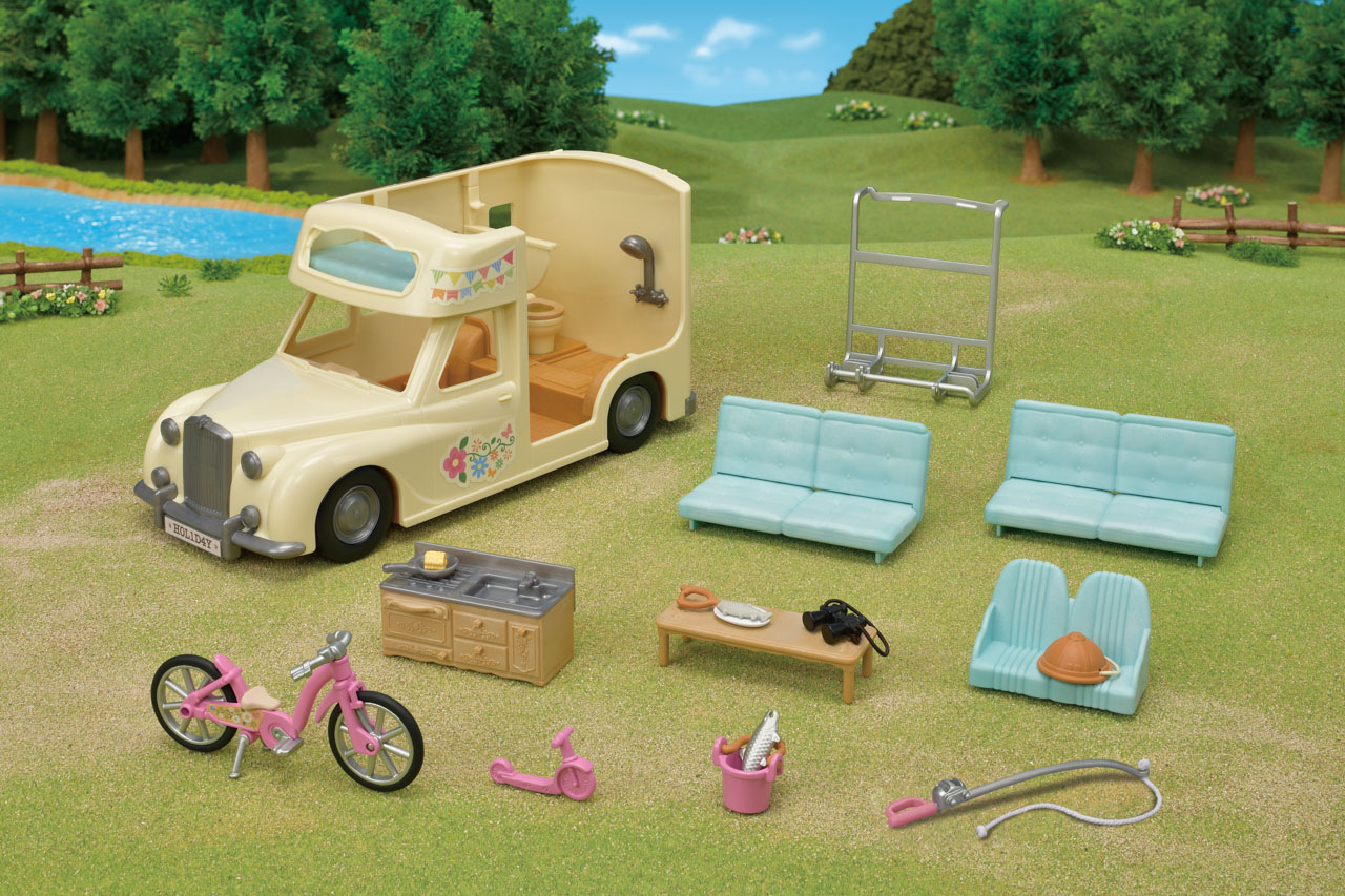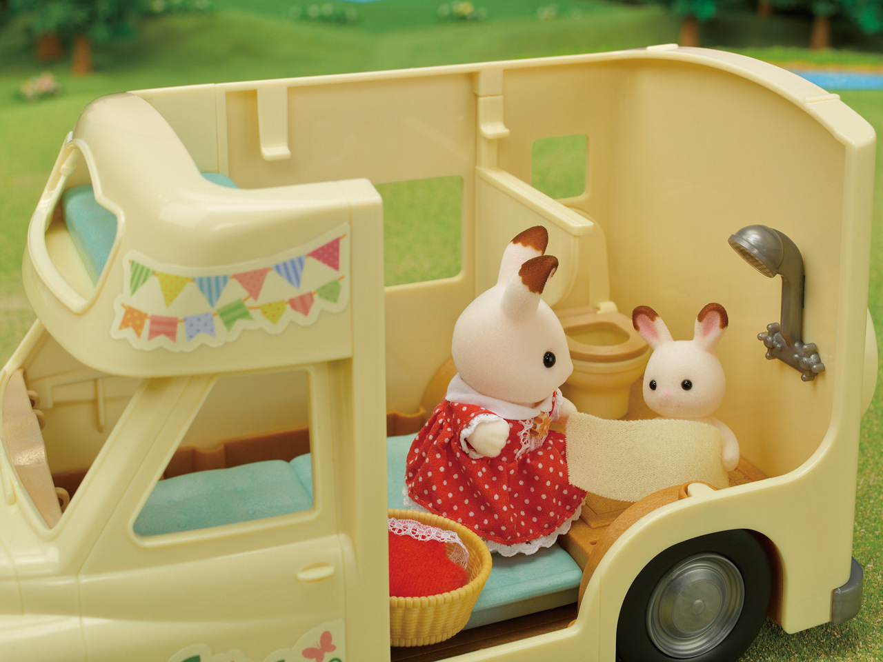 Užijte si vaření, grilování, jízdu na kole, rybaření a další zábavné aktivity v kempu s Rodinným obytným vozem se sedmi sedadly. V obytném voze mohou spát dvě dospělé figurky, dvě baby figurky, dvojčata a miminko. Sedadla lze sklopením přeměnit na postel. Kuchyň schovaná pod palubní dekou obsahuje pánev, kukuřici a grilovanou rybu. Ulovte čerstvé ryby s rybářským prutem a přineste je v kbelíku. Dětské horské kolo, dětské kolo a rybářský prut lze uložit do zadního nosiče. Užijte si více zábavy s dalšími figurkami a doplňky Sylvanian Families (prodává se samostatně). Herní sady a figurky Sylvanian Families jsou nadčasové a vysoce kvalitní hračky. Hra podněcuje představivost dítěte.
