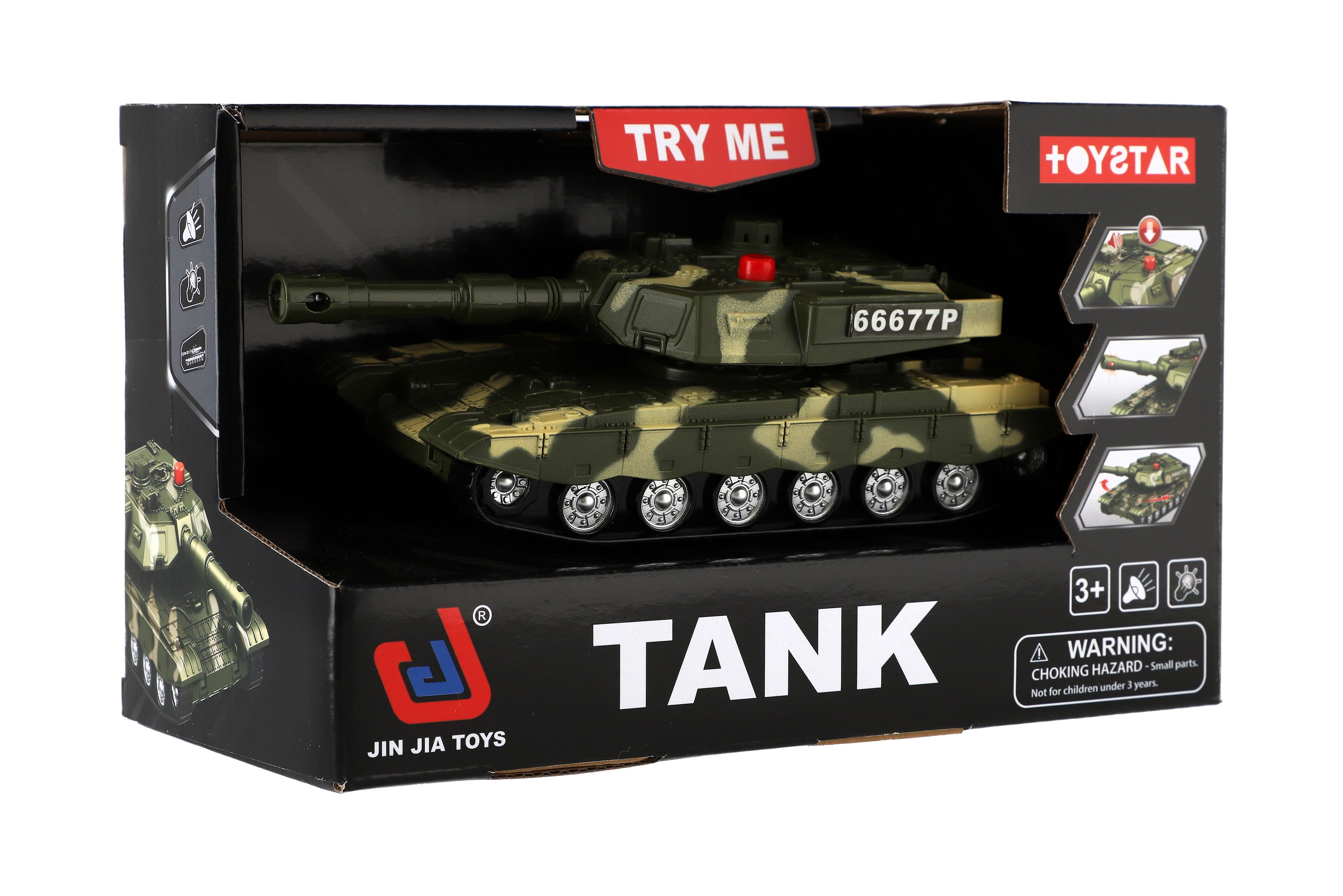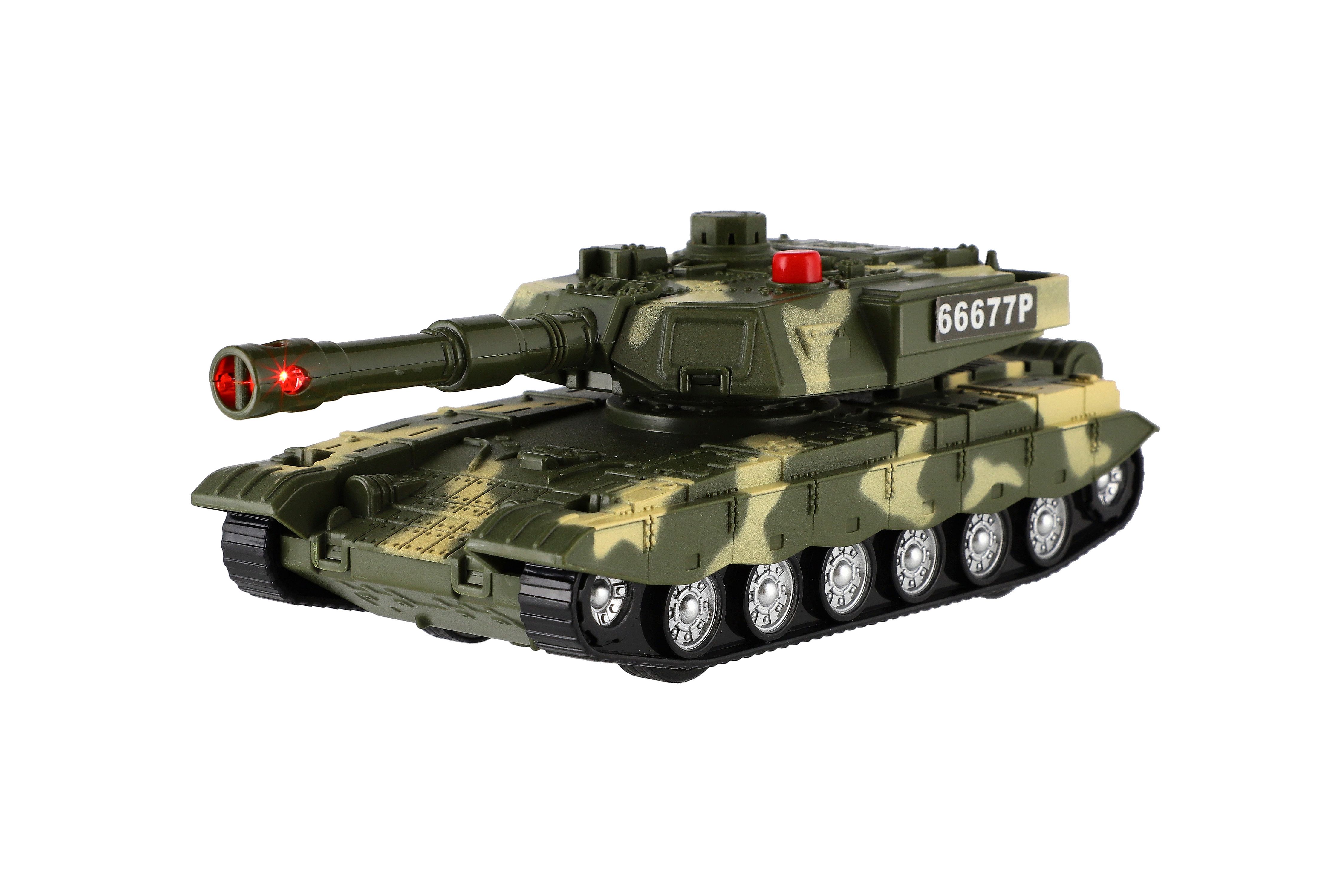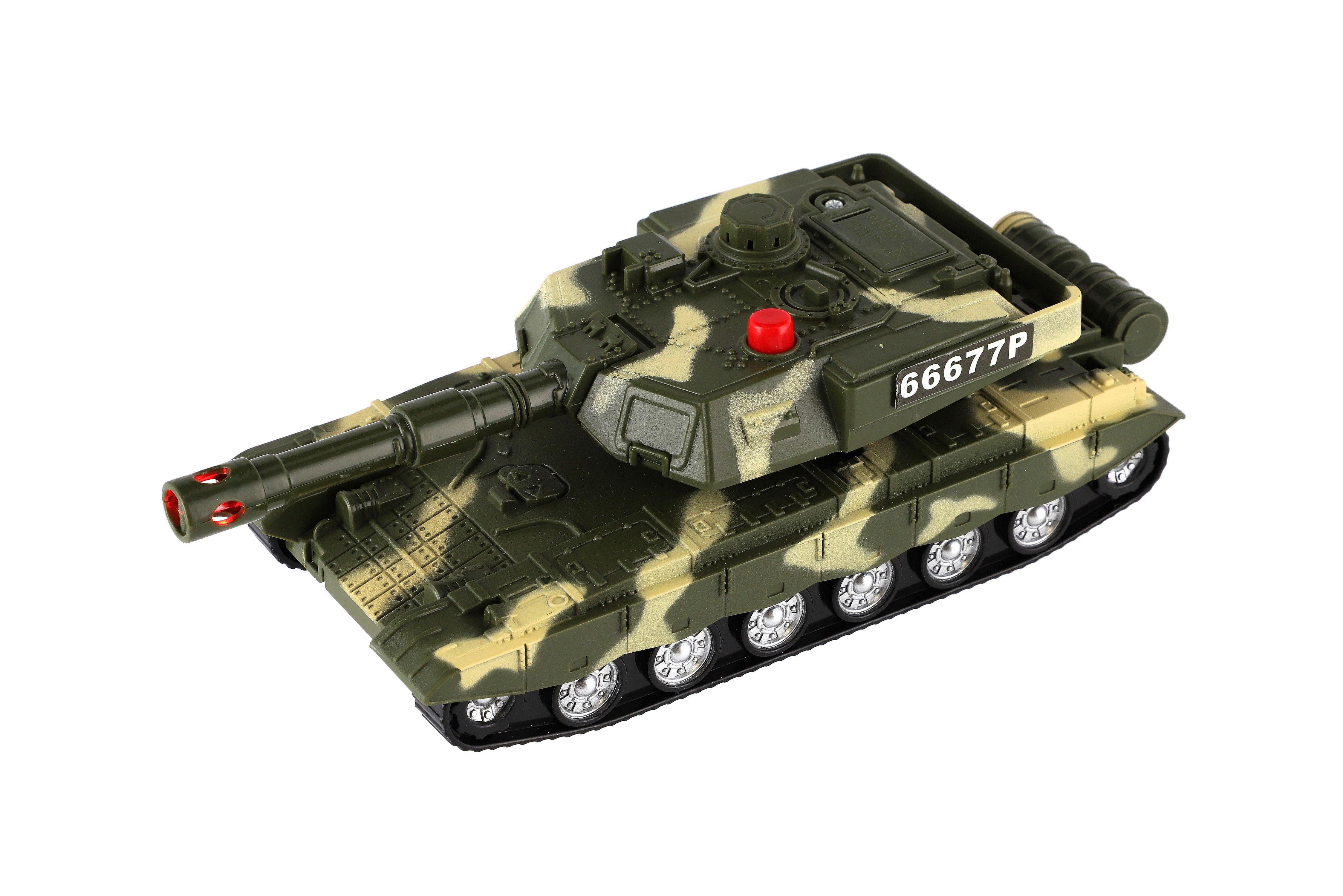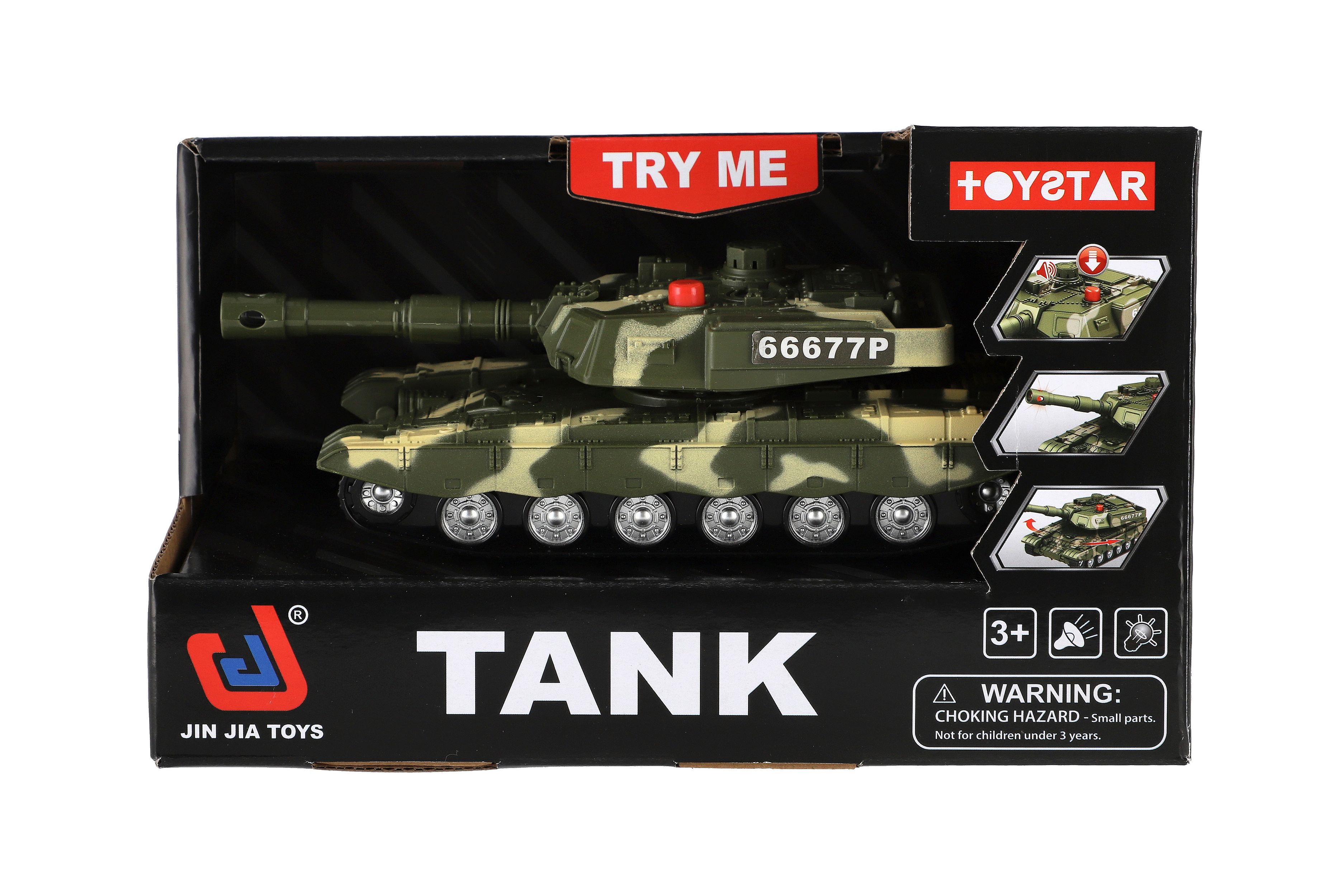 Tank na setrvačník se bude líbit klukům, kterým se to doma vojáčky jenom hemží. Každá pořádná armáda musí mít i tanky, se kterými už žádnou bitvu neprohraje a celá válka bude vyhraná. Hračka vydává zvukové i světelné efekty. Velikost tanku 20 cm. Rozměr balení 23 x 14 x 11 cm. Vhodné pro děti od 3 let.