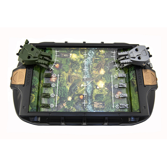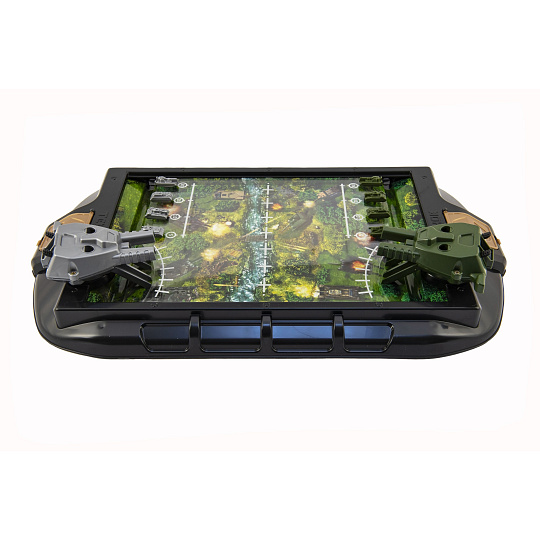 Stolní tanková bitva. Účelem hry je co nejdříve porazit nepřítele. Každý hráč umístí své čtyři tanky do speciálních otvorů na hrací desce vedle sebe a rovnoměrně si rozdělí kuličky. Každé dělo může být vyzbrojeno dvěma míčky (jeden míček v každém slotu děla). Rozměry balení 55 x 33 x 9 cm. Vhodné pro děti od 5 let.