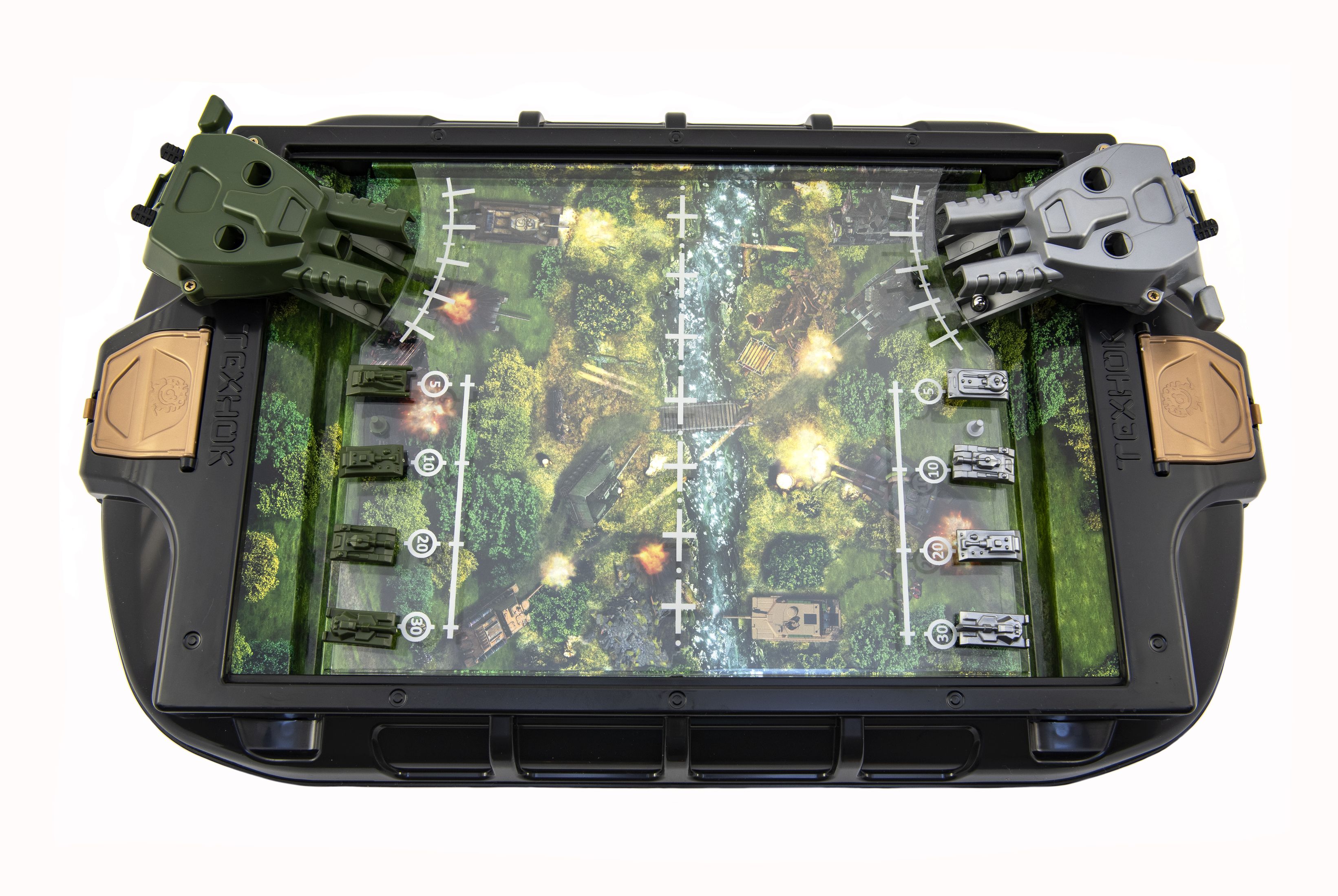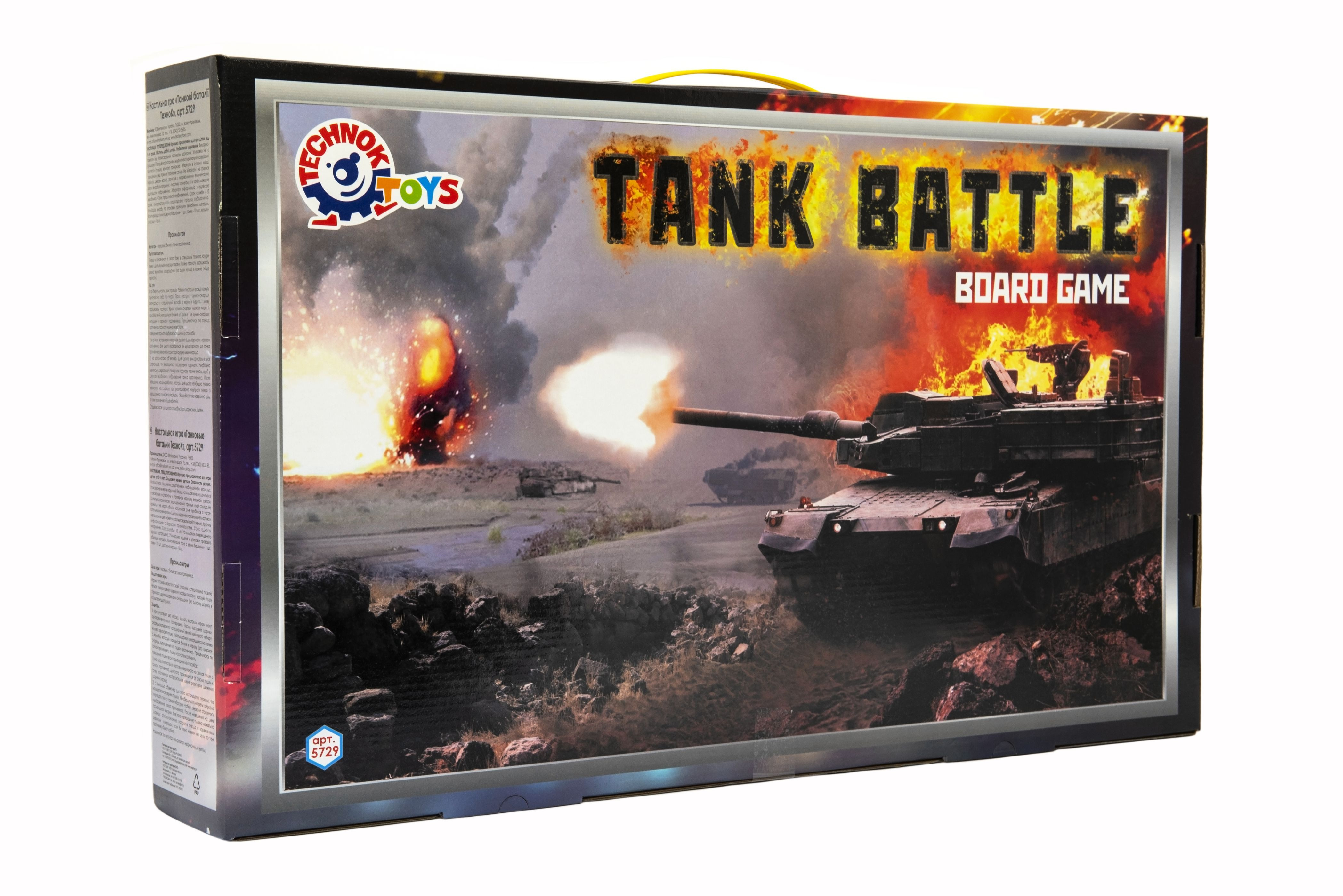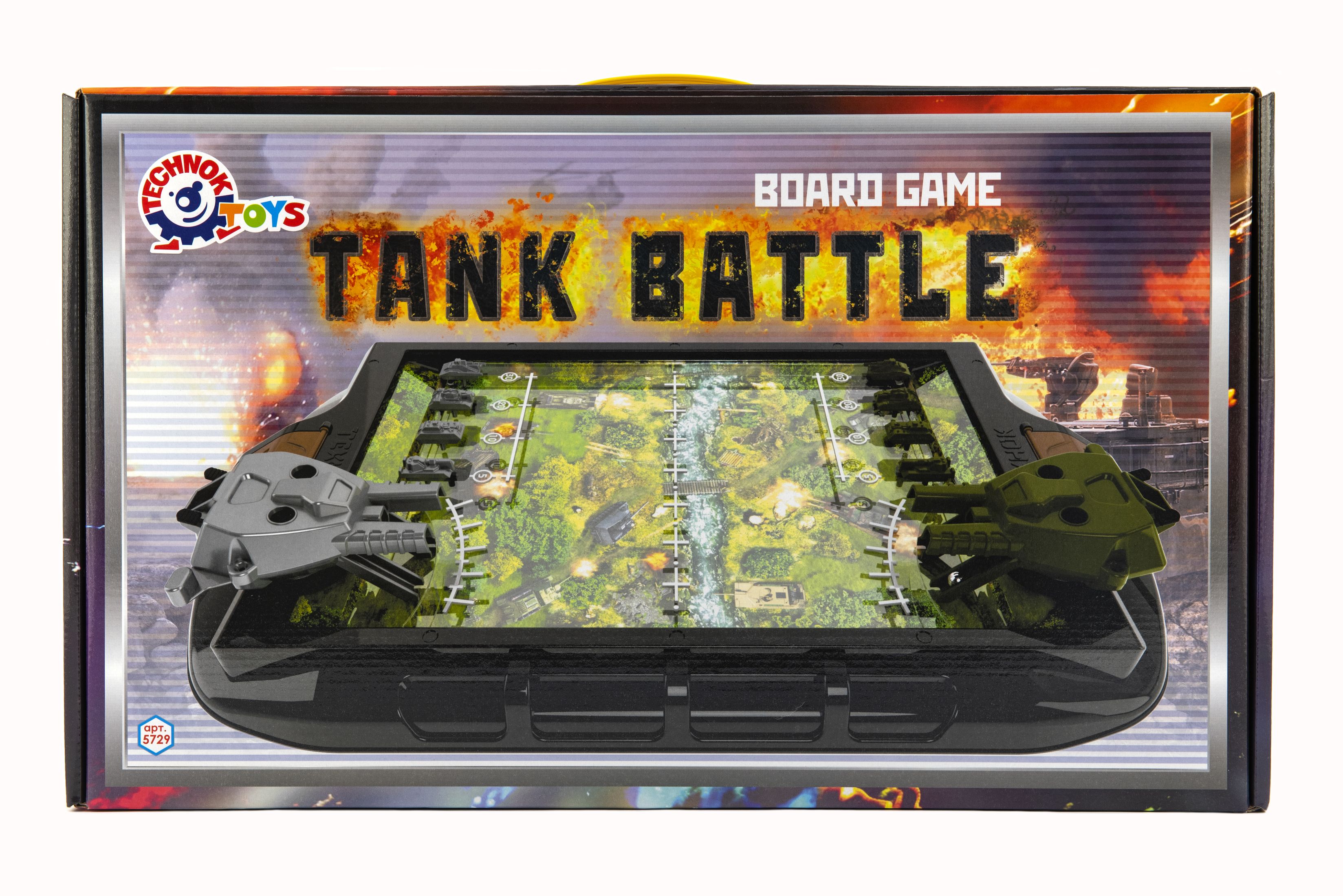 Stolní tanková bitva. Účelem hry je co nejdříve porazit nepřítele. Každý hráč umístí své čtyři tanky do speciálních otvorů na hrací desce vedle sebe a rovnoměrně si rozdělí kuličky. Každé dělo může být vyzbrojeno dvěma míčky (jeden míček v každém slotu děla). Rozměry balení 55 x 33 x 9 cm. Vhodné pro děti od 5 let.