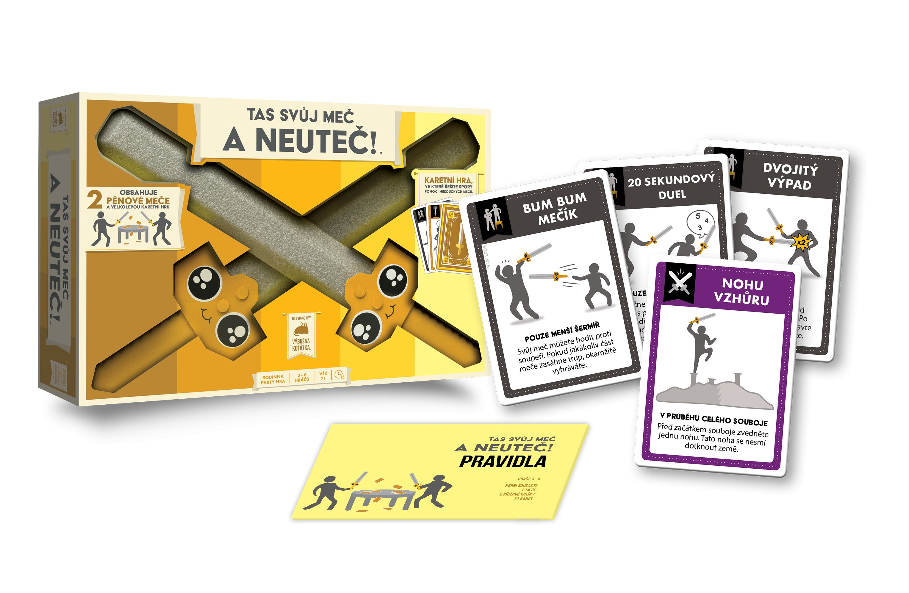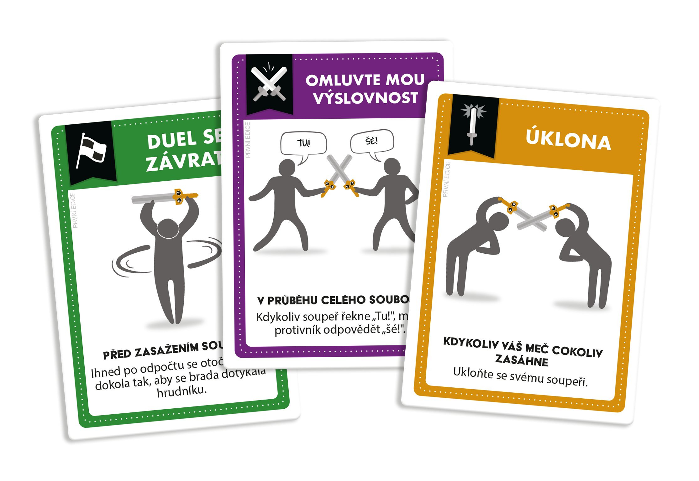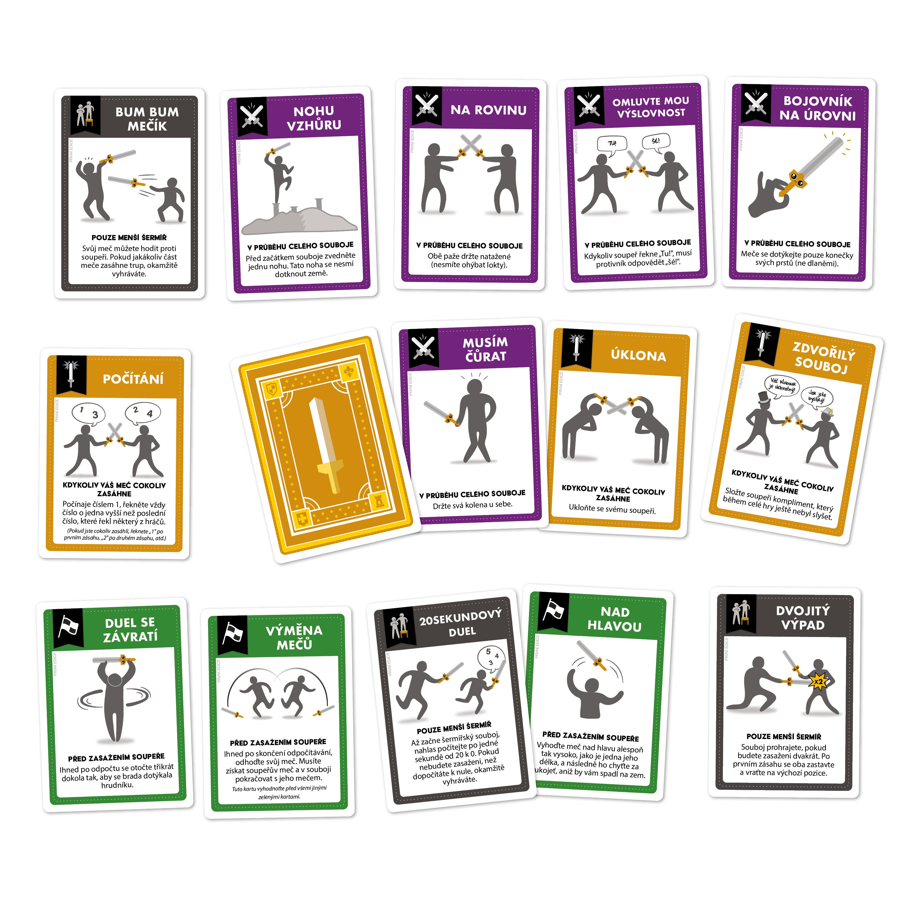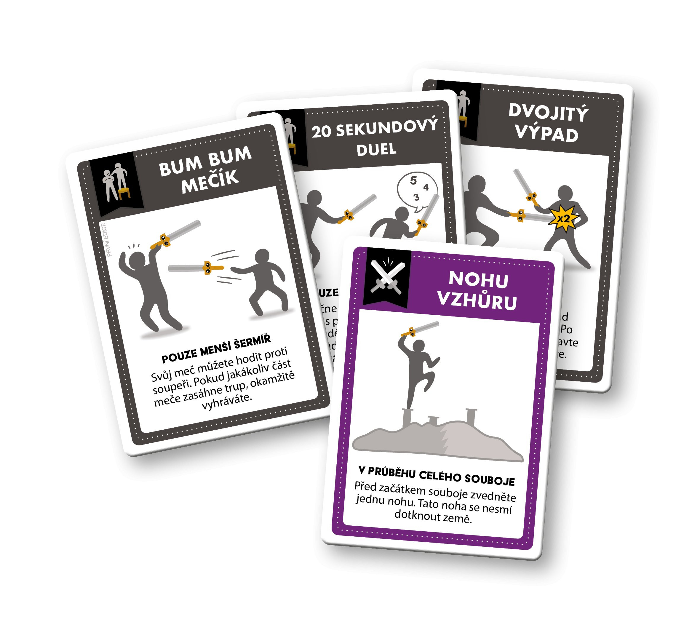 Představujeme vám úplně první karetní hru od tvůrců Výbušných koťátek a Bum Bum Burrita se šermířským soubojem pomocí mečů, ve které se hráči hádají o karty a tyto hádky řeší údery pěnovými meči... přesně tak jako dospělí.