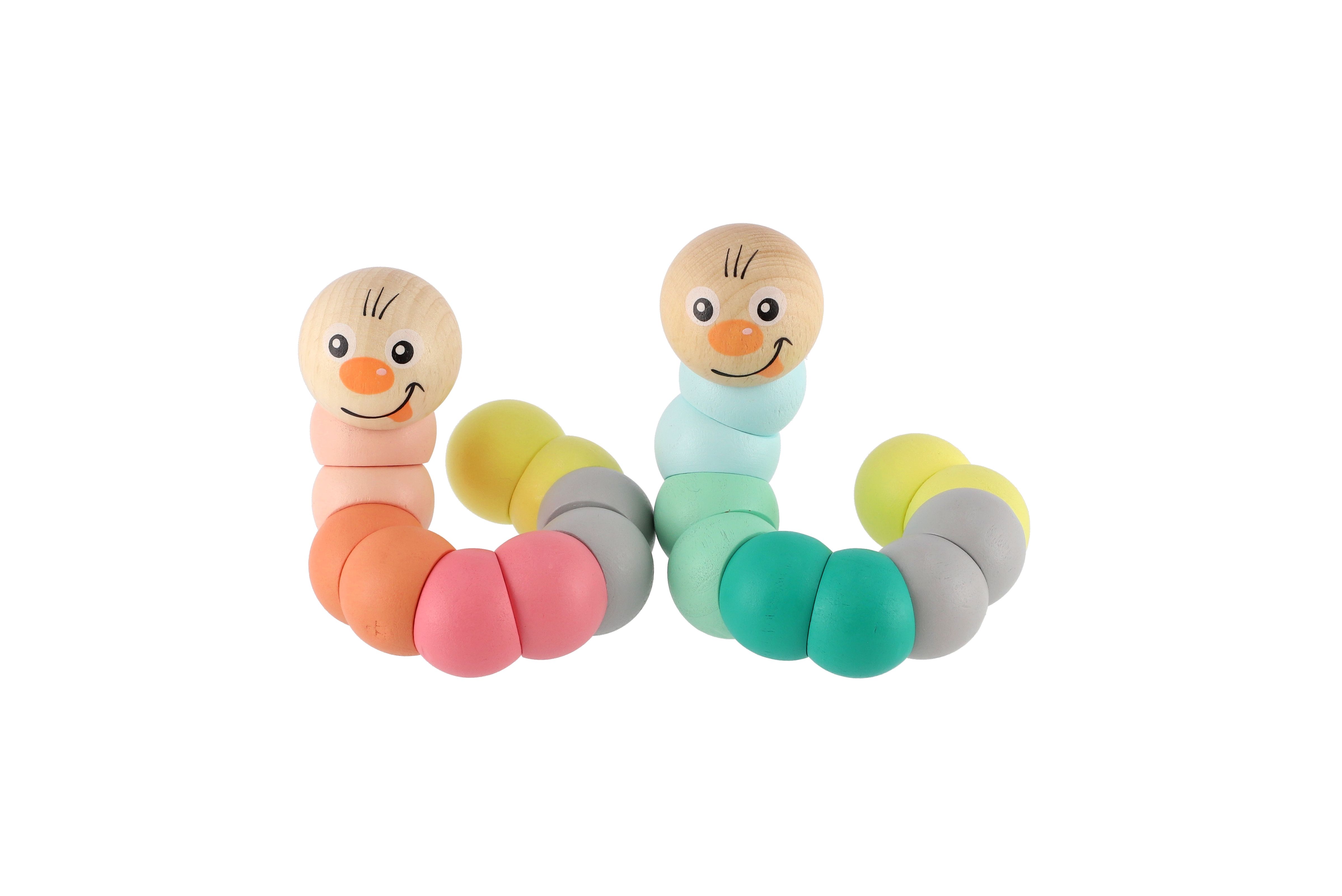 Teddies Červík/housenka kloubový dřevo 16cm asst 2 barvy