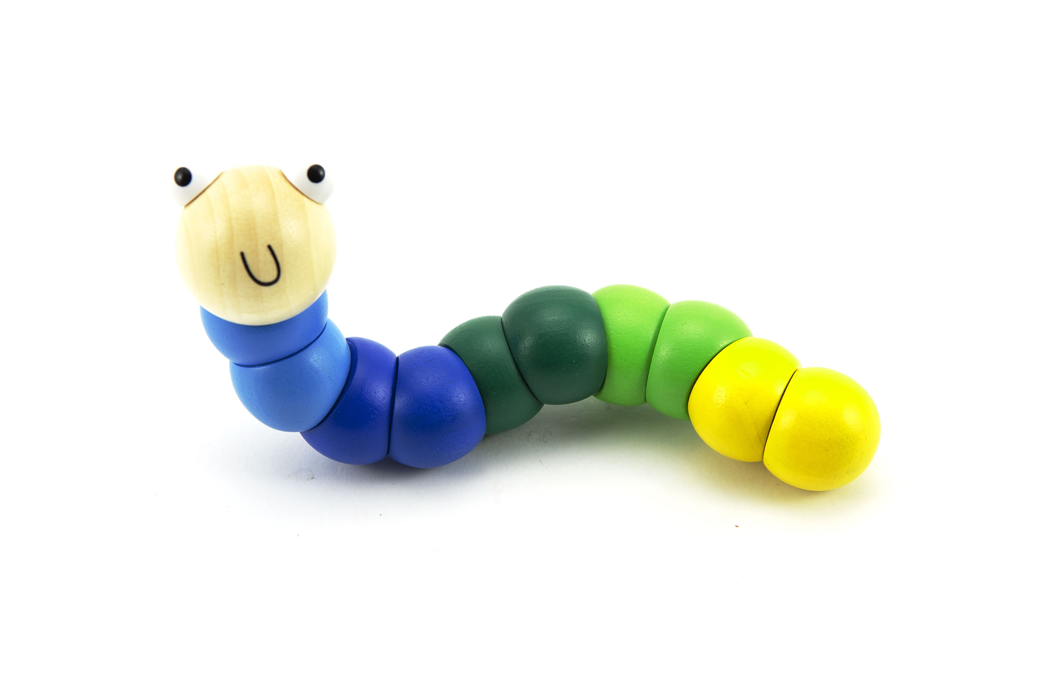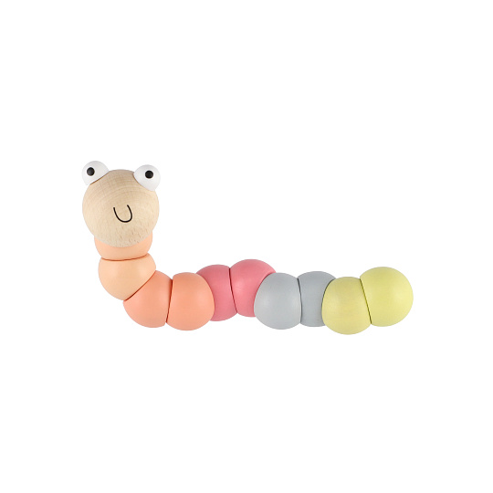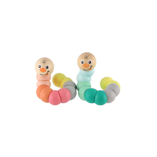 Udělejte radost Vašim dětem tímto krásným dřeveným červíkem, který hraje všemi barvami. Červíka lze různě ohýbat. Rozměry výrobku 16 x 3 x 3 cm. Vhodné od 10 měsíců.