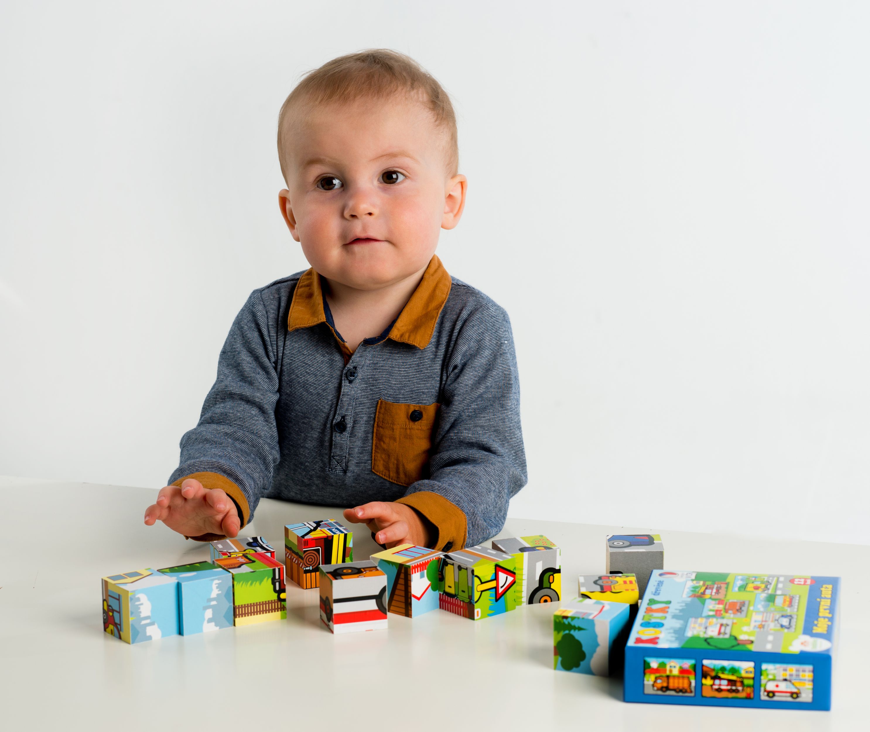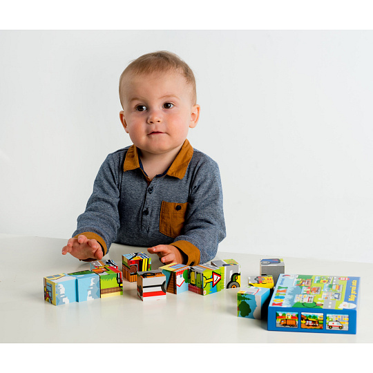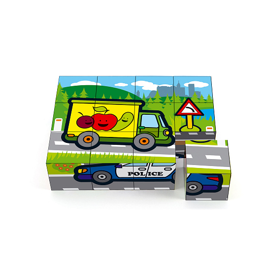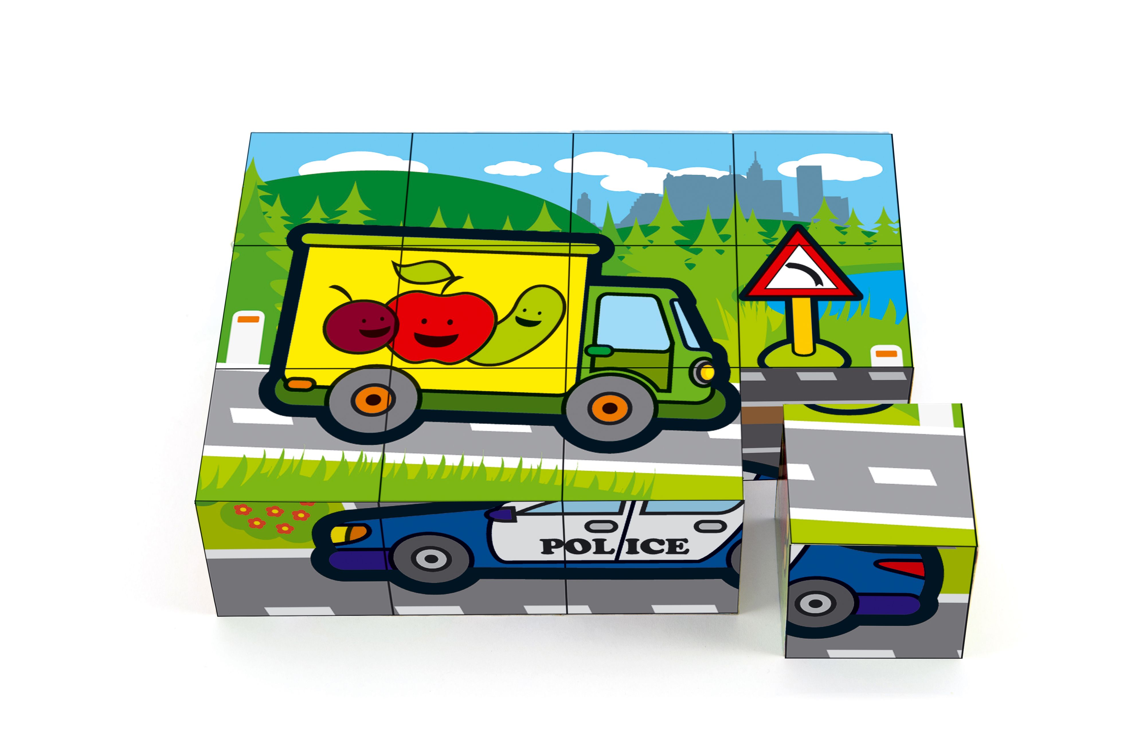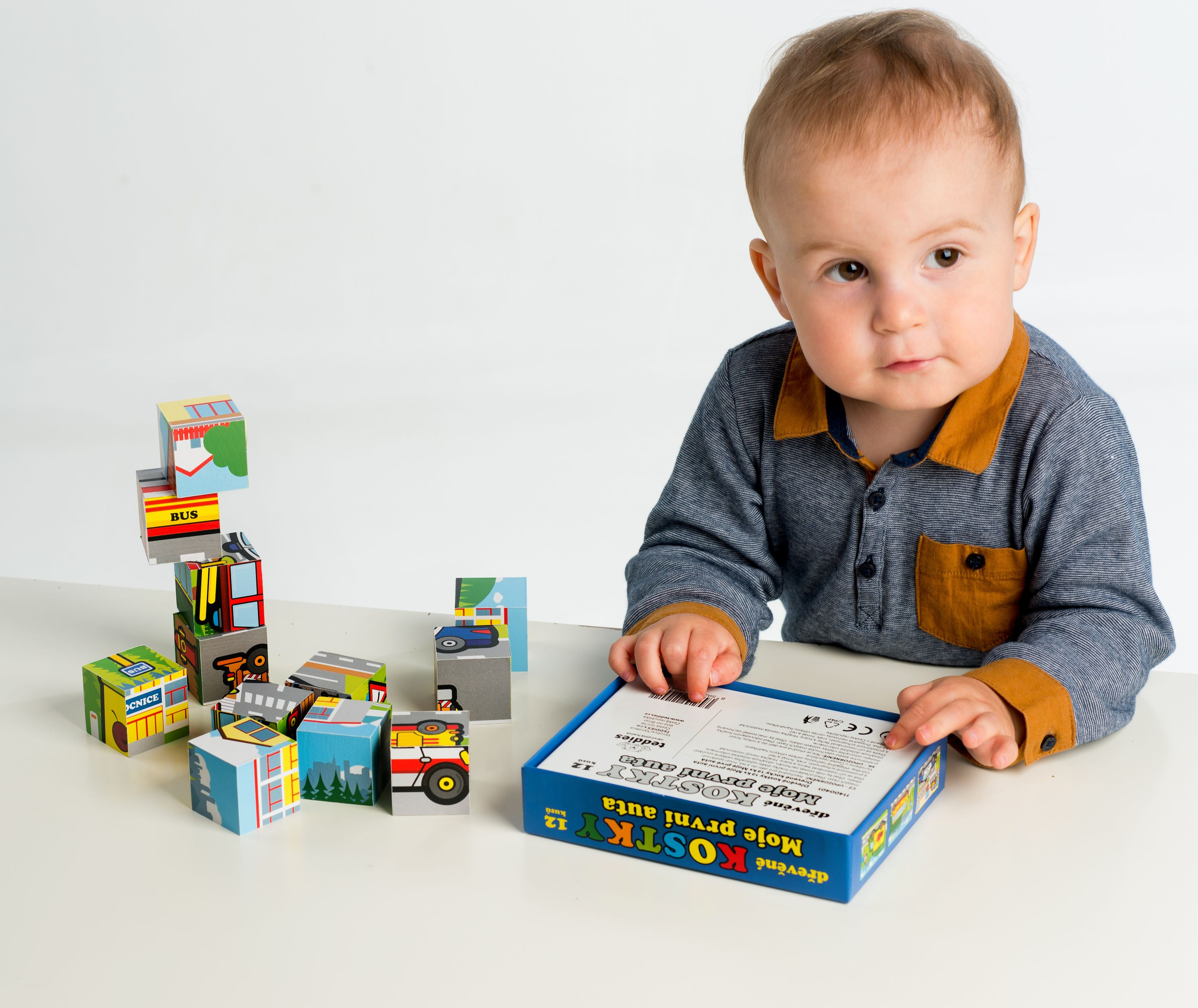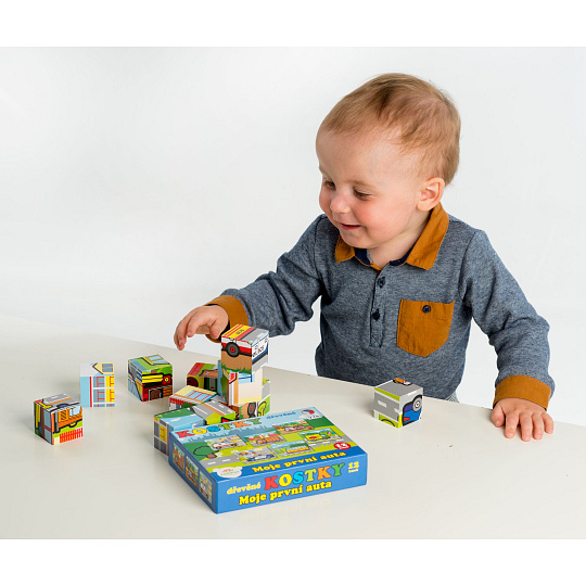 Teddies Kostky kubus dřevěné Moje první auta 12ks v krabičce 17x12,5x4cm