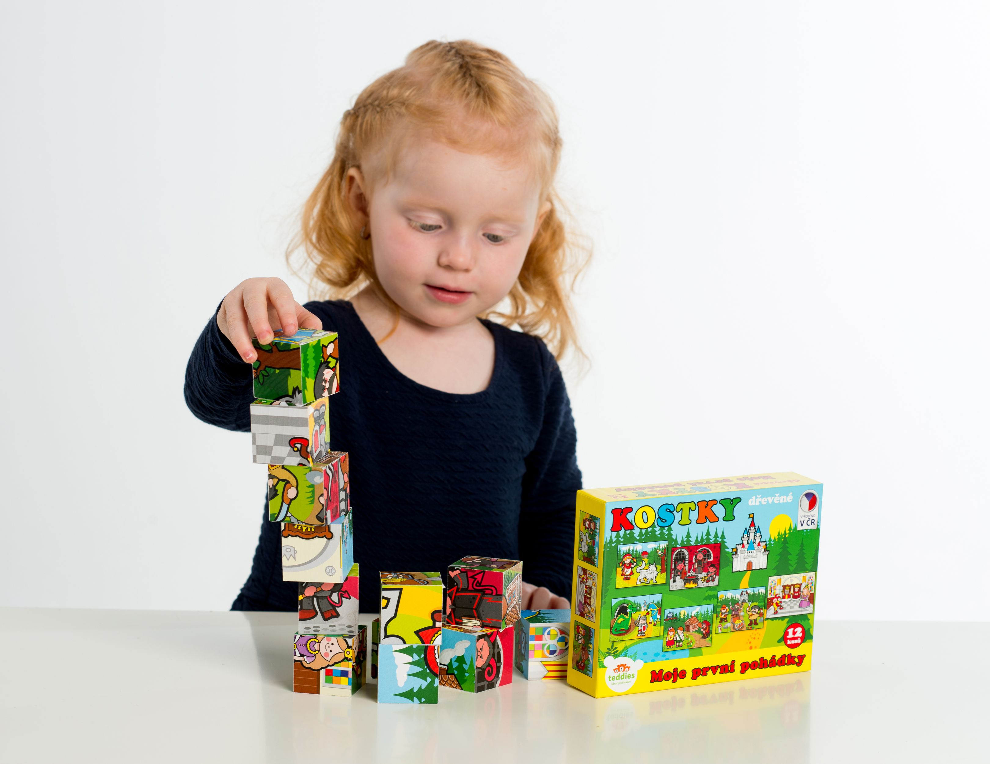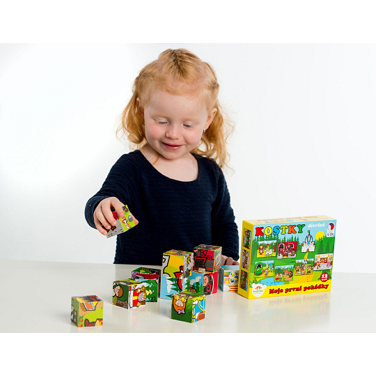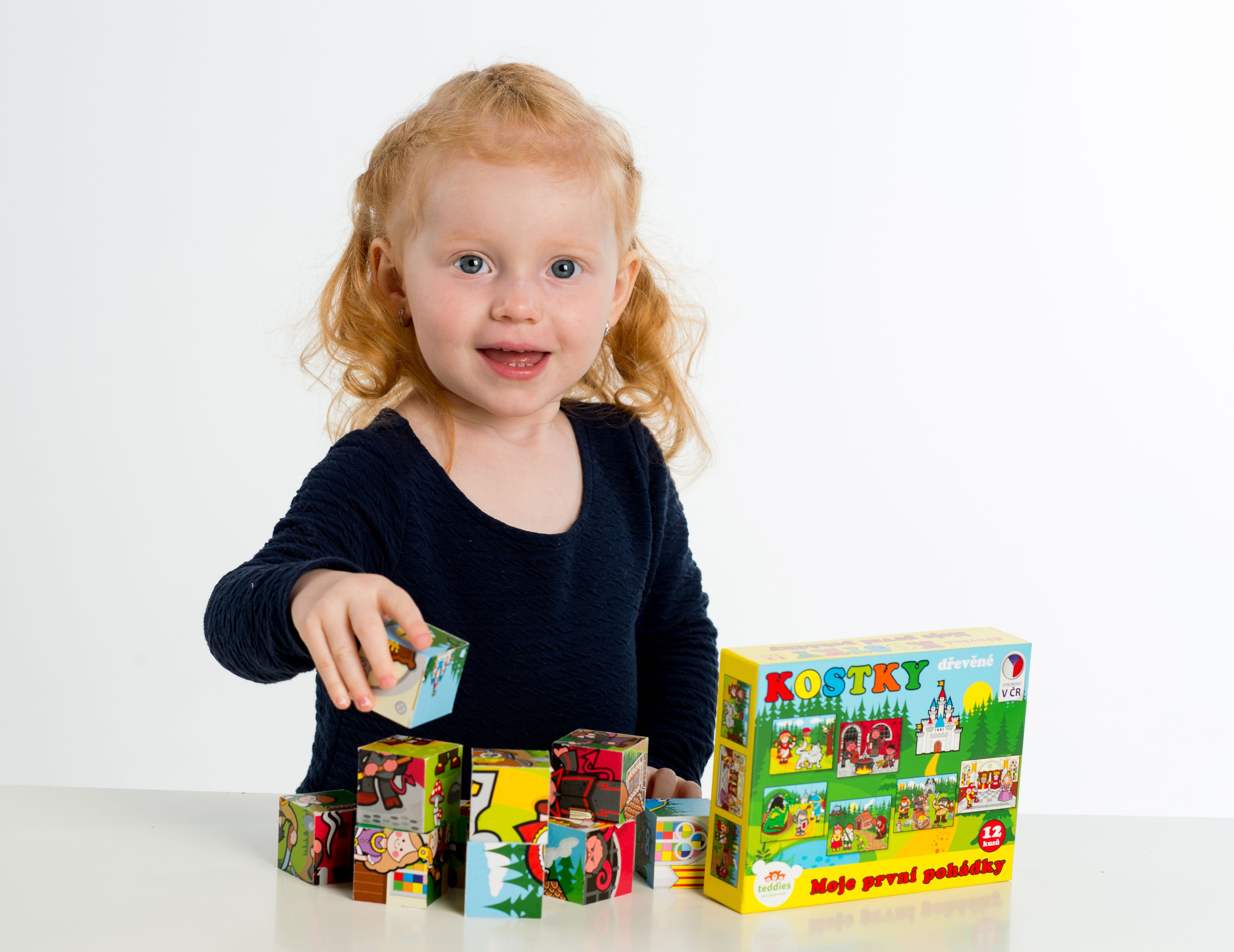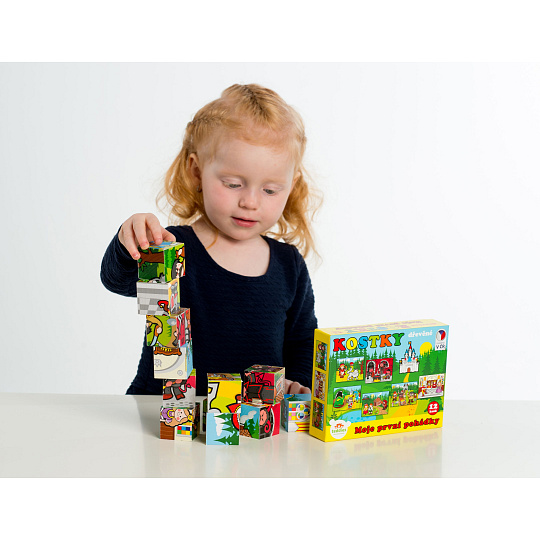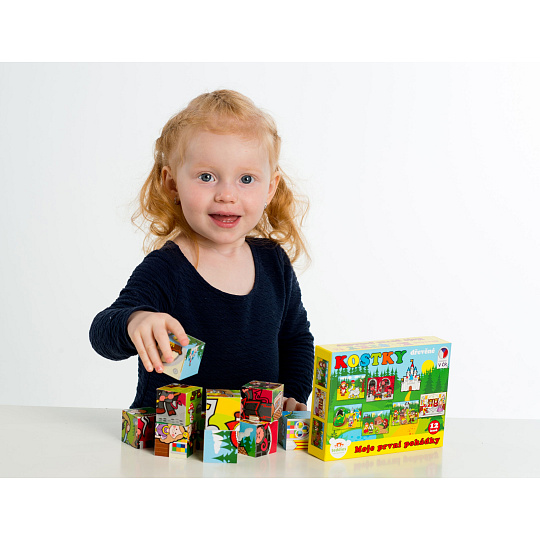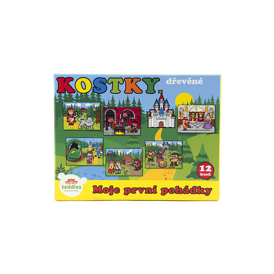 Teddies Kostky kubus dřevěné Moje první pohádky 12ks v krabičce 17x12,5x4cm