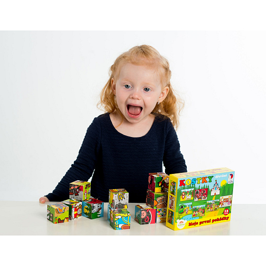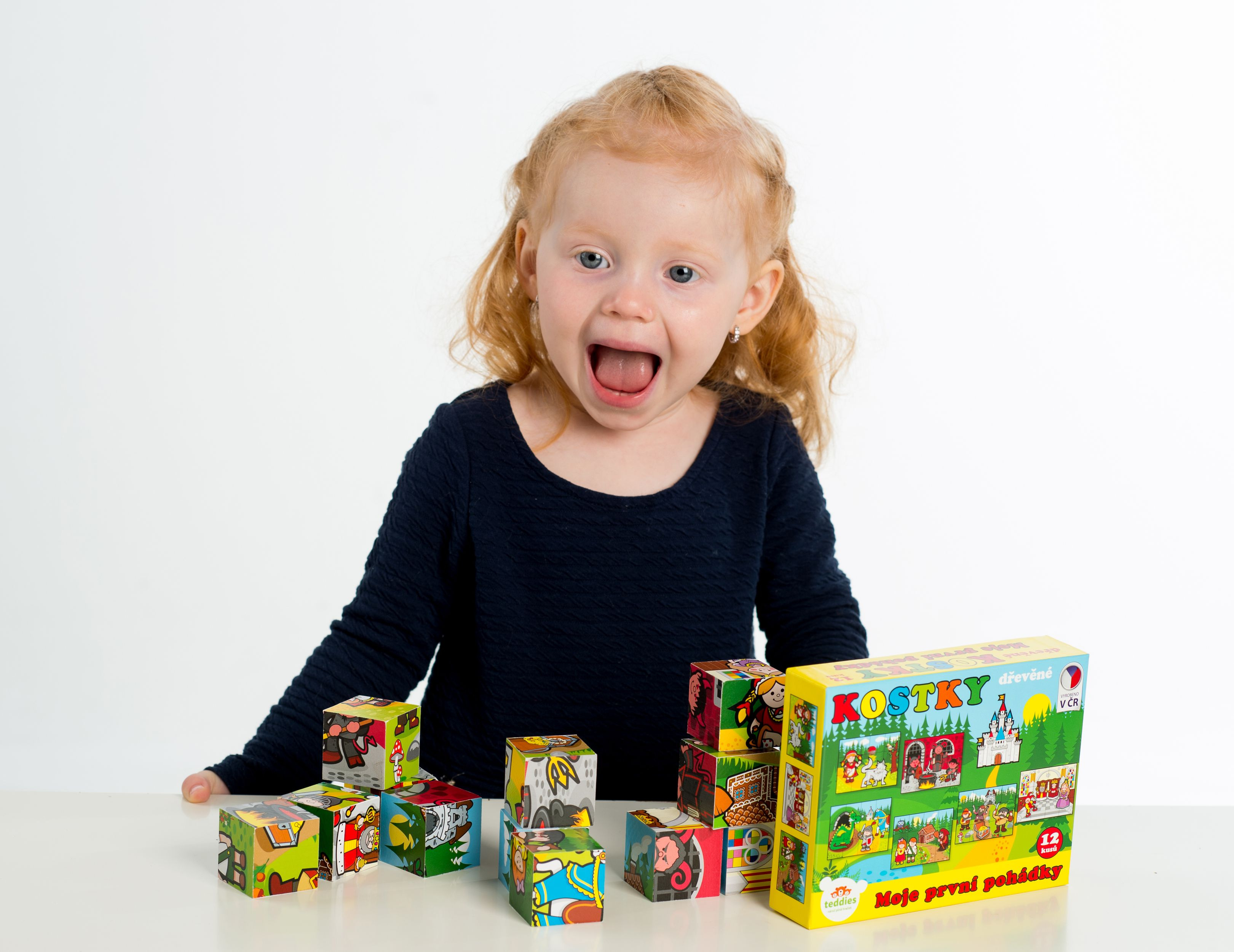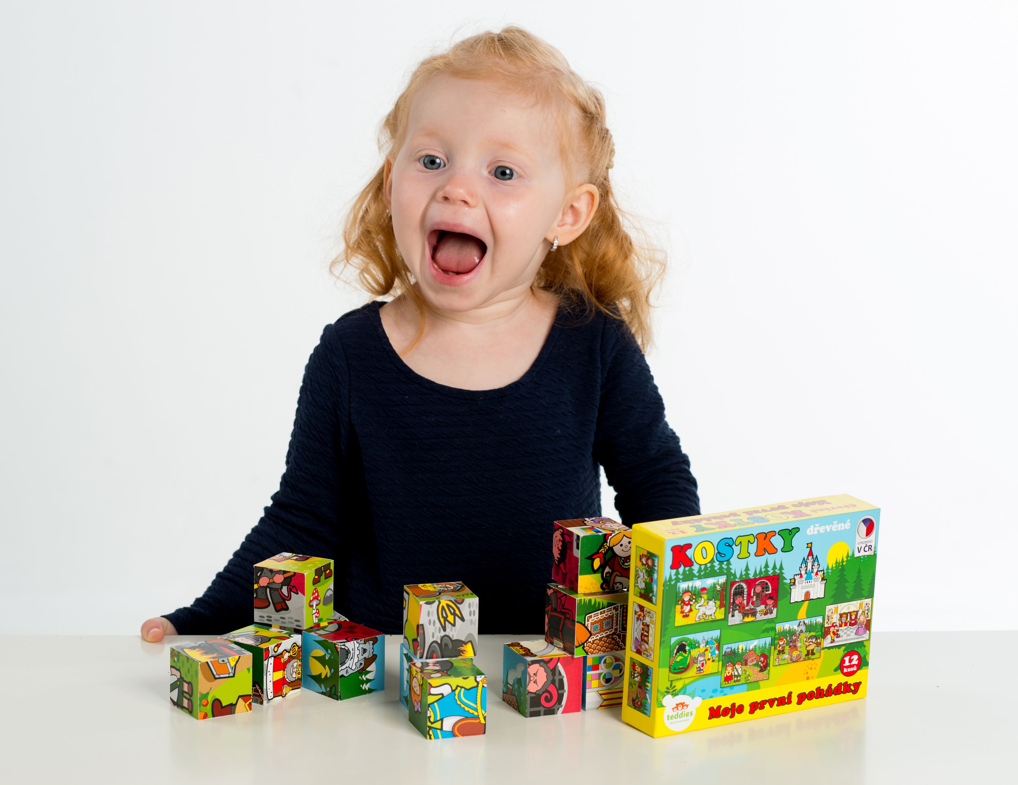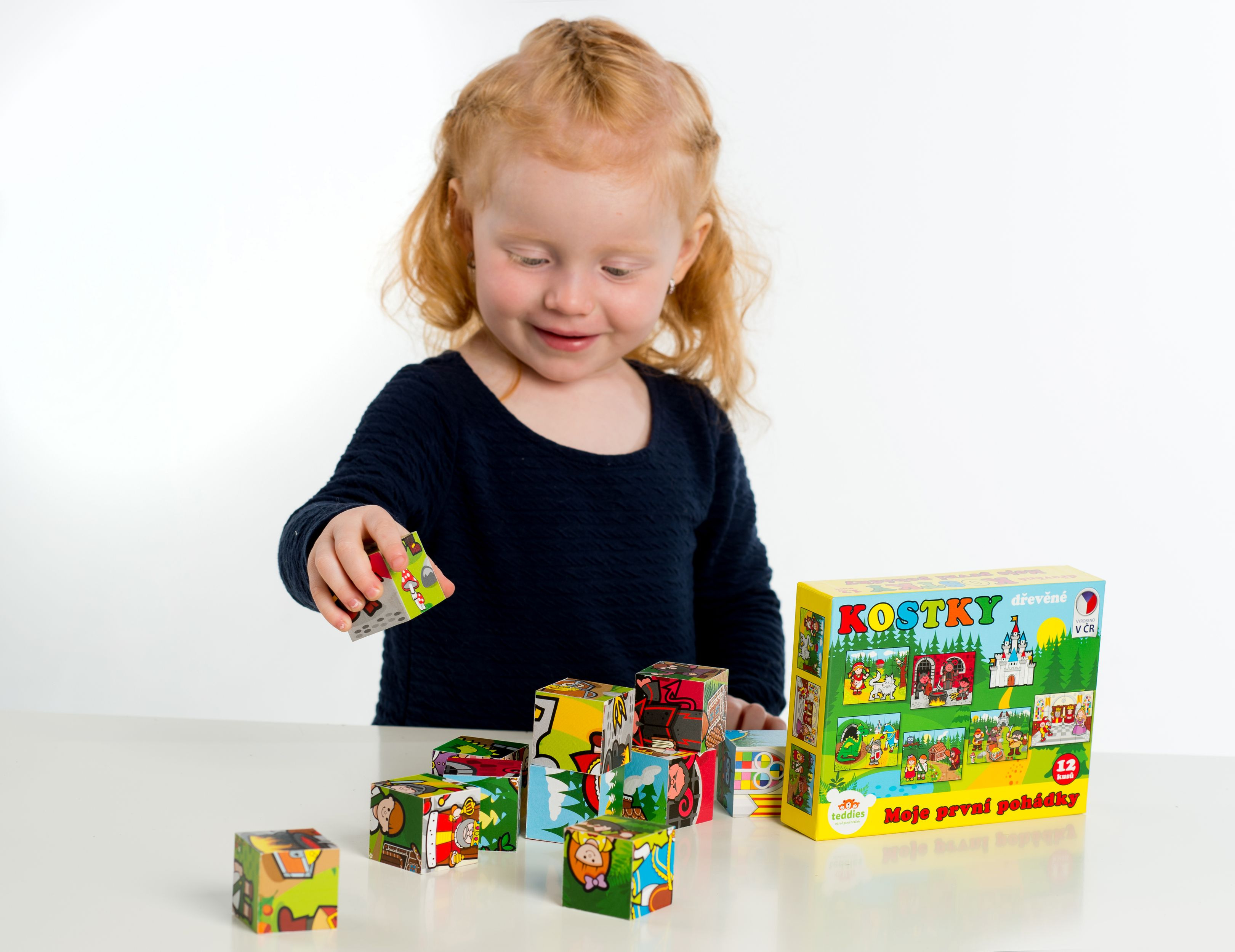 Teddies Kostky kubus dřevěné Moje první pohádky 12ks v krabičce 17x12,5x4cm